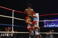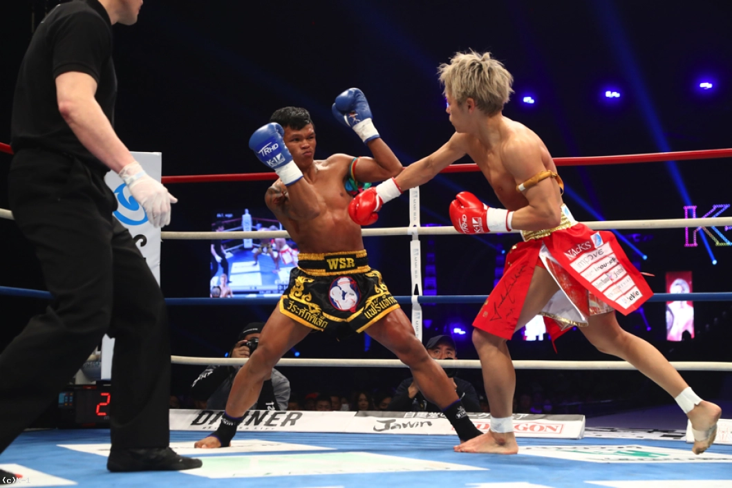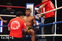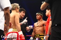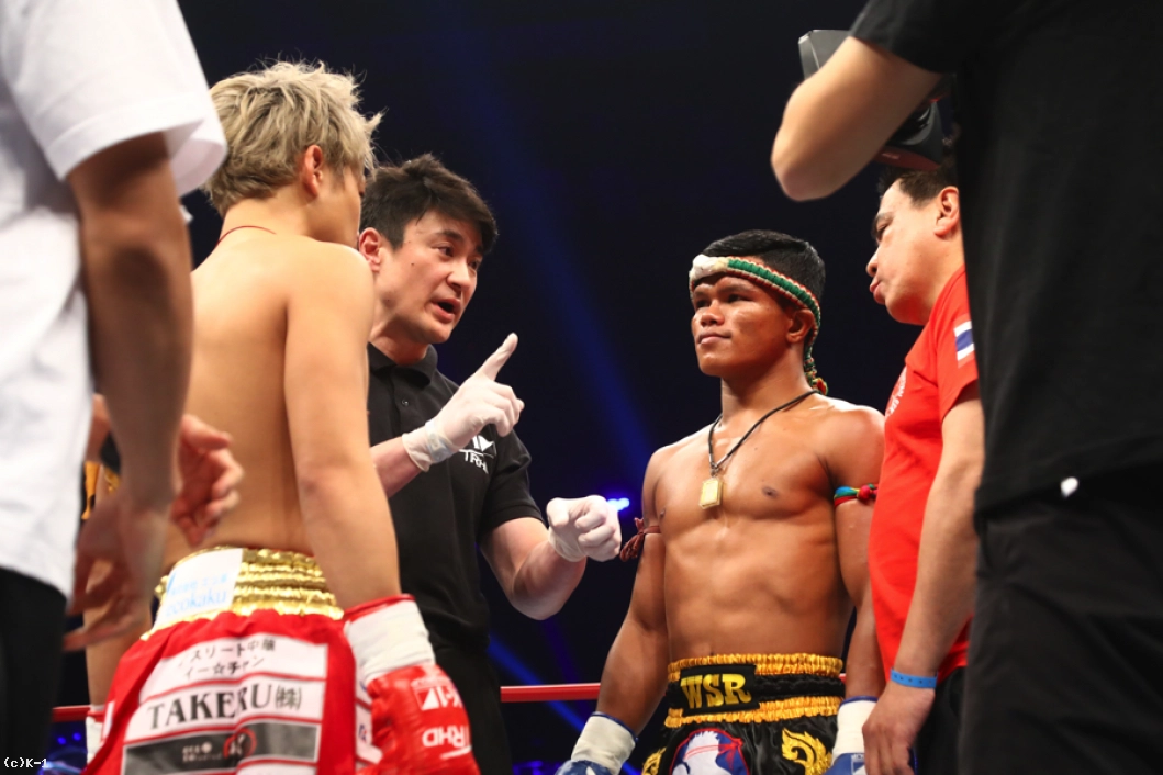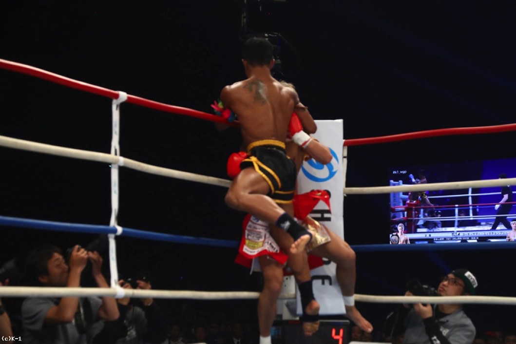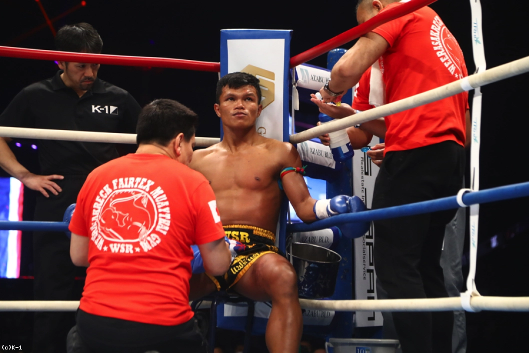 「(試合の感想は?)悲しいし、もったいないことをしたなと思う。(相手の印象は?)パンチだけが強い選手だと思います。(これからの目標は?)タイに戻ってしっかり練習して強くなって、また武尊選手と戦いたい。(パンチの強さは想定外?)想定外の重さだった。当初の考えでは、これほど重いとは思っていなかった。(インローは効いた?)いろいろな経験を積んできて、これくらいの脚のダメージでは全く問題ないと思っていて、やはりパンチが重かった」