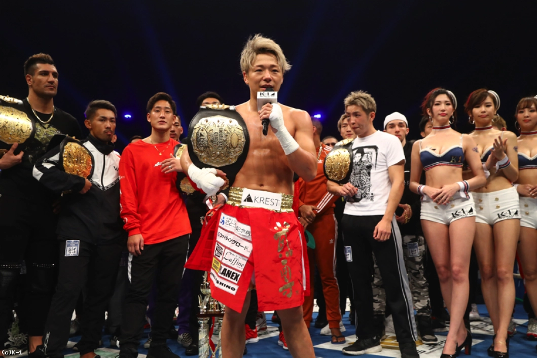 「この試合は僕の中でも、人生の中でも大一番だと思っていて、でも万全で試合に出るのは難しくて、たくさんの人とのおかげで無事勝てたので、サポートしてもらって感謝しています。ファンの方のSNSでのメッセージやコメントも全部見てるんで、励みになるし気合い入るんで、ありがとうございます。この試合にめちゃめちゃ懸けてたんで、しゃべることが見つからないんですけど、いま格闘技が盛り上がっていて、ブームだと思うんです。昔の格闘技ブームにはまだかなわないかもしれないけどもう(格闘技ブームは)始まってるんで、今日からスタートということで、みなさん一緒に盛り上げてください。これからはもっともっとK-1が最高ということを証明するために戦わないといけない相手もいると思うんで、それを実現させるのは難しいですけど、ブームで終わらせないで、このジャンルが野球とかサッカーとかバスケットボール、オリンピックみたいな、始まったらみんな見る、みんなが知ってるっていうものにするためこれからも盛り上げていくんで、よろしくお願いします」