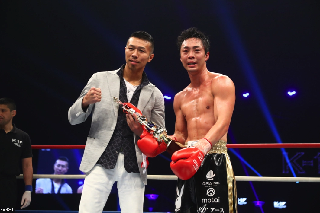 「(試合の感想は?)約1年ぶりにリングに上がることができて、華やかなリングの空気を吸えて、刺激を感じました。(相手の印象は?)本当に気持ちがすごく強くて。もともと僕も試合からちょっと遠ざかっていたこともあって、郷州戦のオファーをいただいた時に、郷州選手だから今回の試合を受けたというか。『K' FESTA.1』のときに3回花道を歩かせていただいて、最後KO負けで幕を閉じる形だったんですけど、そこで僕の中である意味区切りがついた気持ちだったんですけど、郷州戦のオファーをいただいた時に、タイムリープじゃないですけど、格闘技の神様から手を差し伸べてもらったような気持ちになって、郷州選手だから今回、受けました。(これからの目標は?)今日、久々にリングの空気を吸えて、刺激的で、また現役を続行したいなと言う気持ちも芽生えてきたので、みなさん楽しみにしてください。