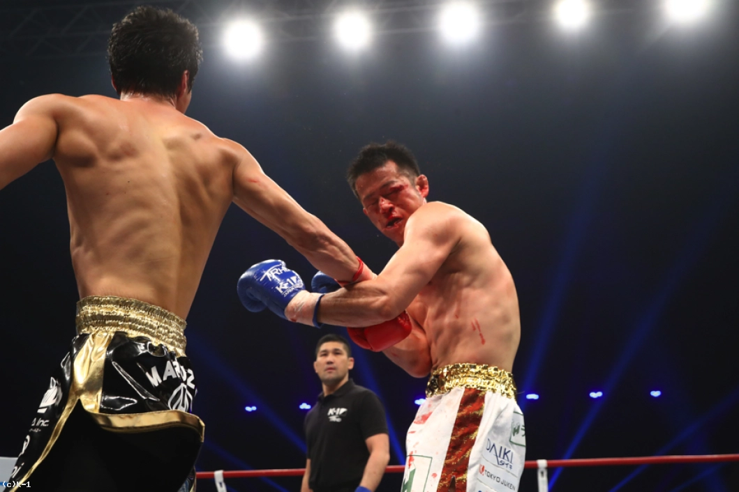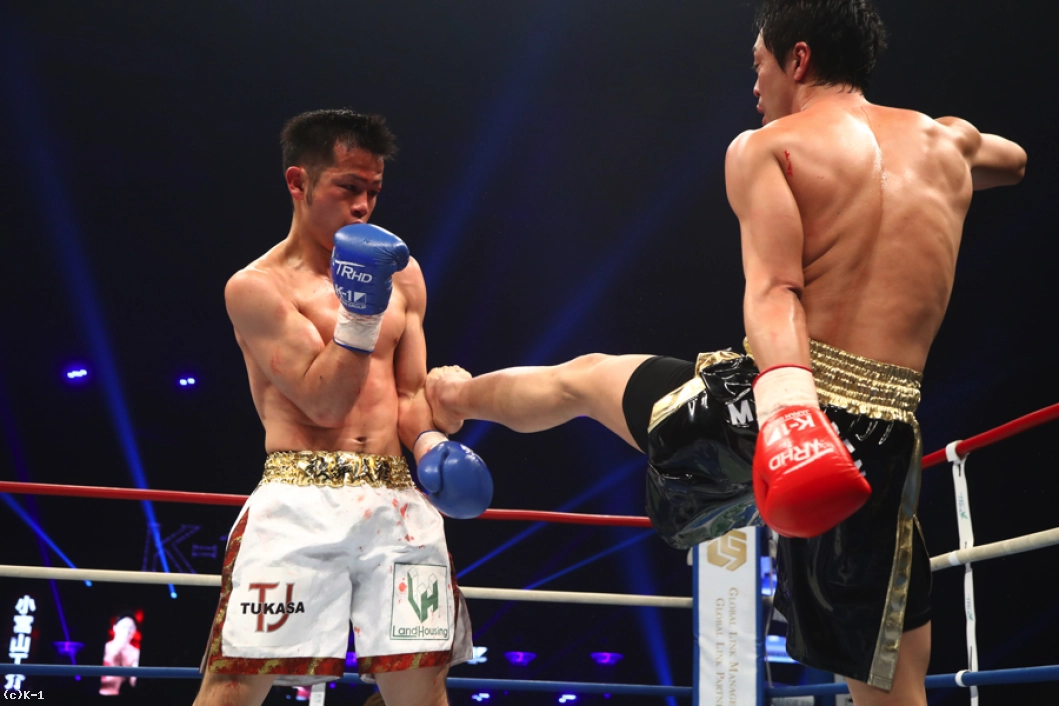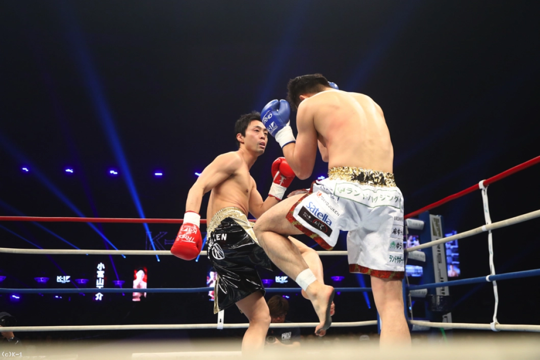 3R、郷州は右ストレート・右クロスと振るっていくが、小宮山は距離を作ることでパンチを目先でかわしていく。そして次第に右ストレート・右フックとカウンターを合わせるようになってくる。やや出足が落ちて見える郷州に対し、小宮山はフットワークを落とさず郷州の周囲を回り、左右のパンチ・前蹴りを浴びせ、やはりクリンチも織り交ぜ、郷州に適打のヒットを許さない。判定は30−29、30−28、30−29の3−0で小宮山。1年ぶりの試合となったが勝利を上げた。