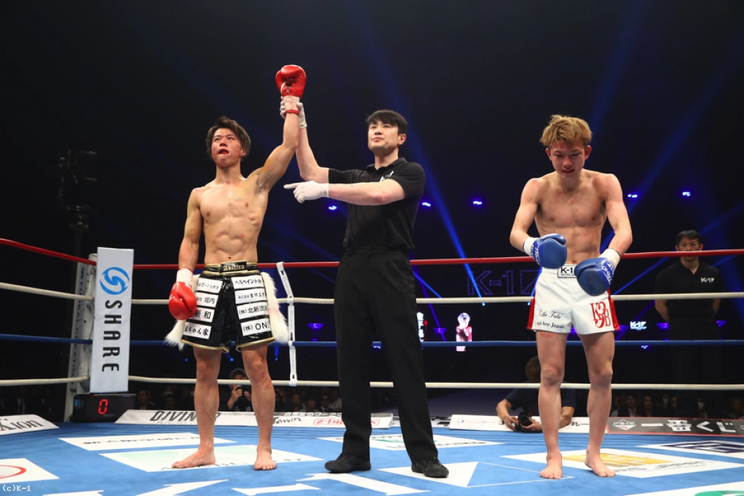 「(試合の感想は?)はじめダウン取られて気持ち折れてたんですけど、前回の大阪大会で悔しい結果で終わってたんで、ここで終われないと思ったので、そこから頑張ろうと思って……結果負けちゃいましたけど、楽しかったですね。(相手の印象は?)想像ではもっと2倍3倍強いと思ってたので、全然勝てるなと思ったんですけど、パンチは強かったですね。(これからの目標は?)ホントは勝って武居選手に挑戦アピールしたかったんですけど、僕にはKrushチャンピオンの弟がいてるんで、負けた身では言えないですけど、まだ僕は武居選手に挑戦したいと思ってるんで。次は決まった試合全部勝って、すぐ挑戦したいなと思ってます」