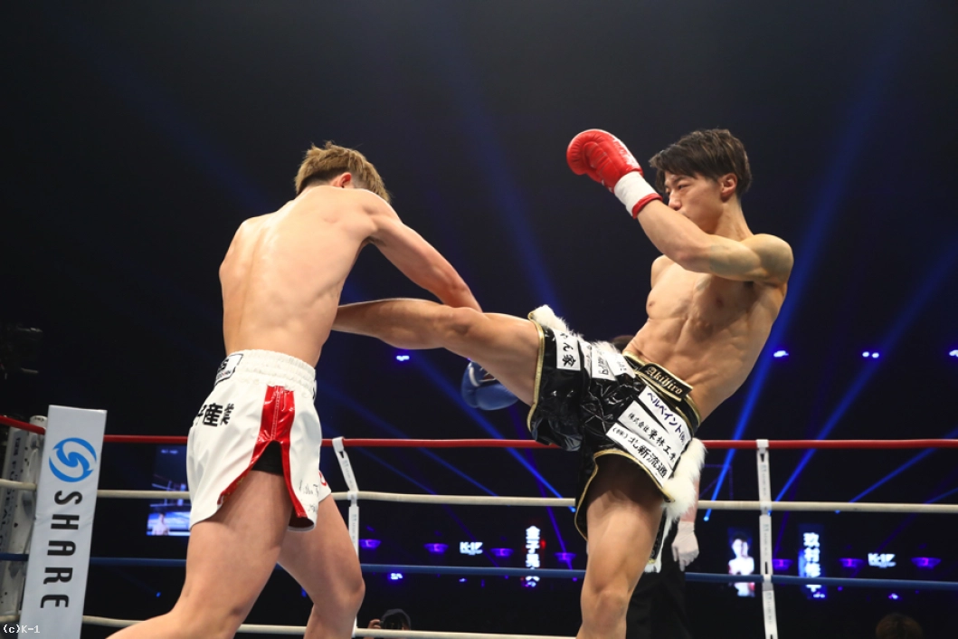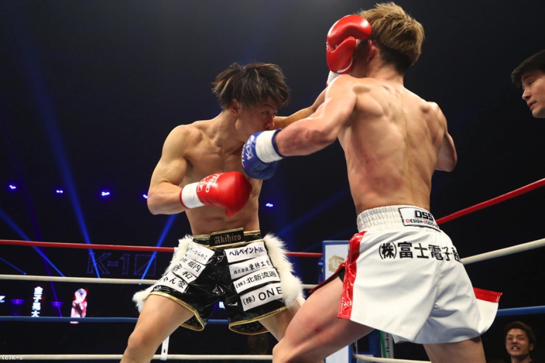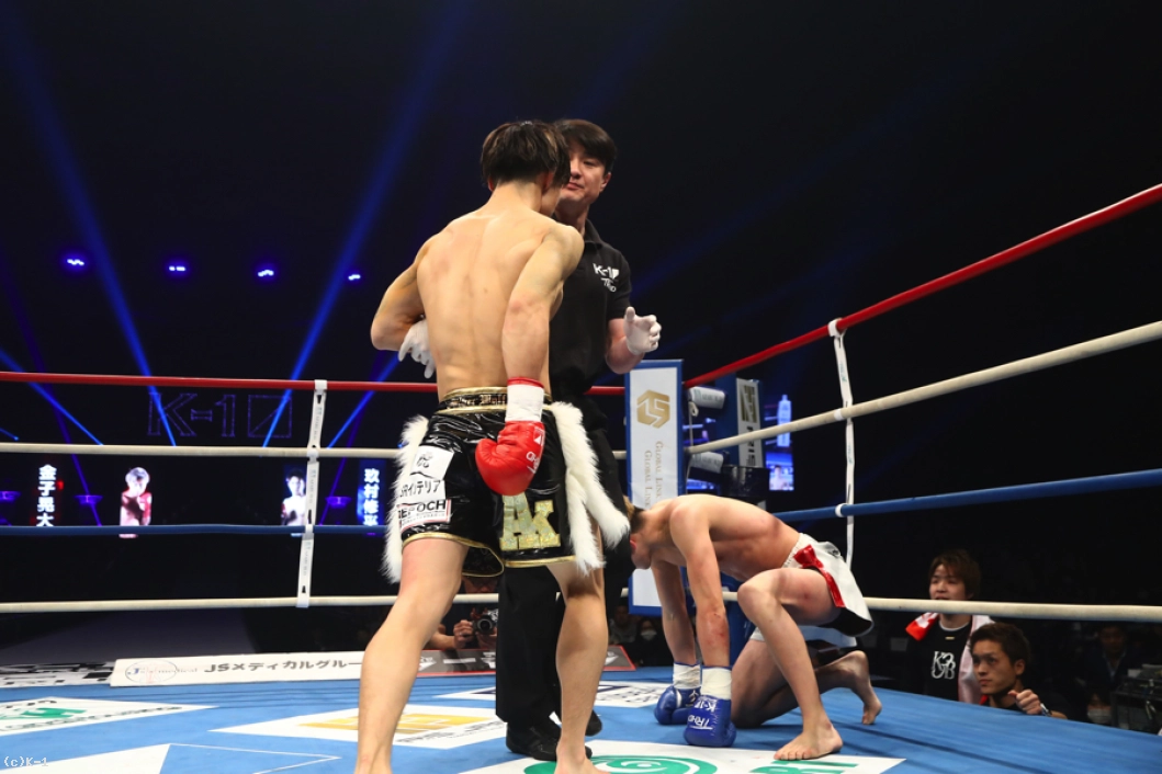 延長R、金子が右ストレートを当てれば玖村も左ストレートを返す。金子はここで前蹴りをボディに打ち込み、続いてヒザ。延長ラウンドでも玖村をロープに追い詰める。そして金子は右ミドルを当て、ジャブからの右ストレートで玖村をフラつかせる。玖村はバックブローを放つが、これは金子にブロックされる。玖村をコーナーから出させない金子はボディへのヒザも見舞う。左右のストレートが強く、玖村が前に出てきてもさらにストレートを打ち込み、そしてバックスピンキックと意外性ある攻撃を見せる。右フック、左ストレートと金子は玖村をフラつかせて試合を終える。判定は3者10−9で金子。新世代同士による好勝負を制した。