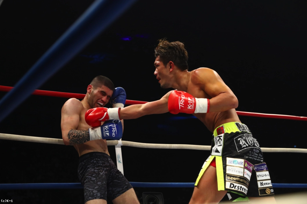 (相手より上回った点は?)見てた通り、全て上回ってたのは俺やけど、まぁ、ホンマ難しい、人を倒すのは。だからちょっと、後で武尊に教えてもらおうと思うて。どないして倒すの?いうて。(武尊選手が倒したところは見ていた?)倒すところは裏におって見てなかったんやけど、まあでも、ラジャも大したことないっすね。俺は倒れへんかったからね(笑)。まあまあ、俺はホンマに最高級のファンと最高級の陣営に、今サポートしてもらってるんで、これで倒せないというのが自分自身けっこう悔しくて、珍しくけっこう凹んでますよね。でもね、俺マジで格闘技界を変えたいんですよ。変えたいし盛り上げたいし。武尊は武尊の盛り上げ方で盛り上げたらいいし、俺は俺の盛り上げ方で盛り上げて、また武尊とやってヤツの首を刈ったらいいし。いつも言ってるようにね、みんなが見たがってるカードをできるように俺が一つ一つ頑張っていこうと思うし。そのためにはね、とりあえずぶっ倒さないといかんから、そこをまた自分の目標として頑張っていこうと思ってます。