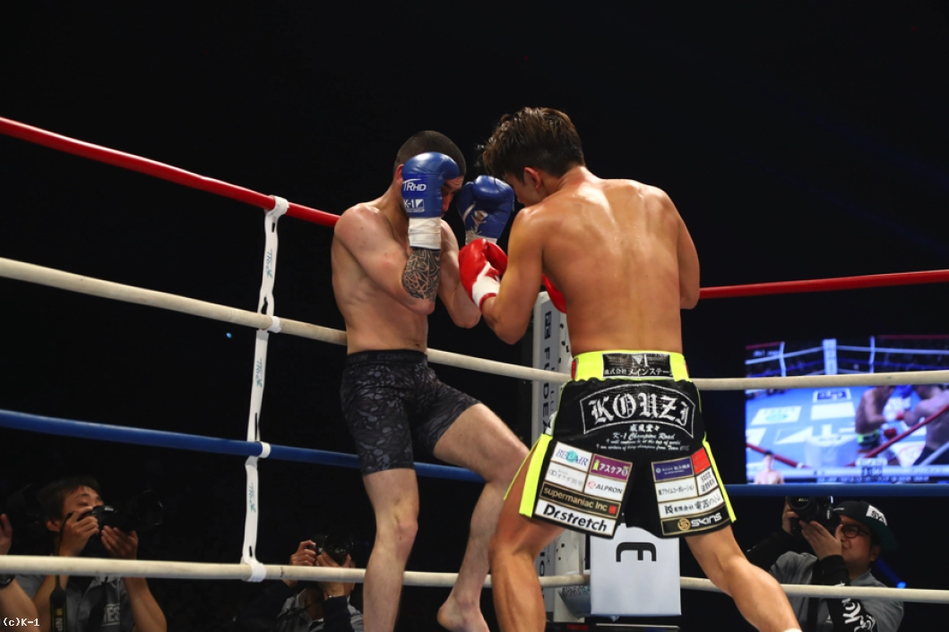 3R、皇治はローとヒザを繰り出しながらサイコに向かい、パンチの後で右ローに繋げる。サイコもヒザを突き上げてくるが、皇治はプレッシャーを緩めず、ロープに追い詰め左ボディでエグる。サイコが出ようとしても皇治は押し戻して左フック・右ストレート、ハイキックと攻撃を見舞うが、サイコをとらえ切れずに終わる。判定は30-29、30-28、30-28の3-0で皇治。倒すことはならなかったが、2019年の初戦を白星で飾った。