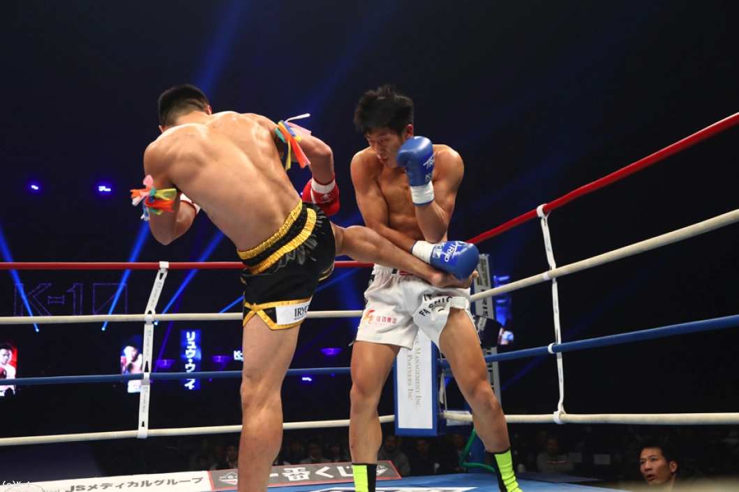 2R、ウェイがダメージを見せる右足にゴンナパーは左ローを追加。前蹴り、右ボディフックでゴンナパーをストップせんとするウェイだが、ゴンナパーはウェイの攻撃の合間をぬって左ローを飛ばす。ワンツーから右フックを連係するウェイだが、ゴンナパーはガードの奥から攻撃を見てダメージを負わない。ゴンナパーのローを足を引いてかわす。