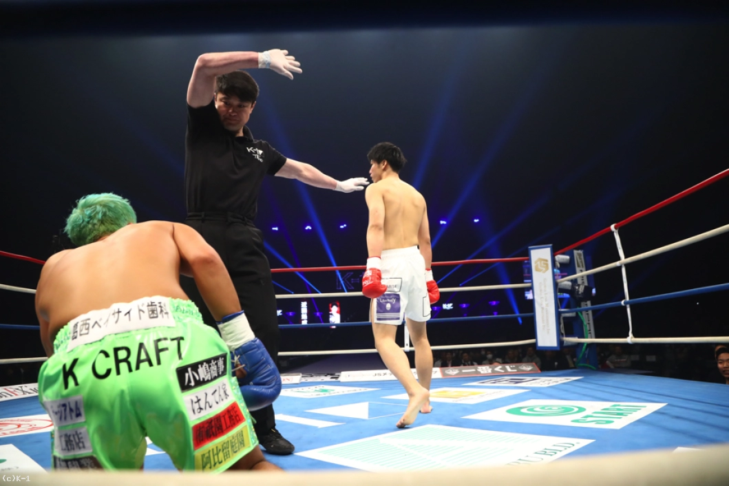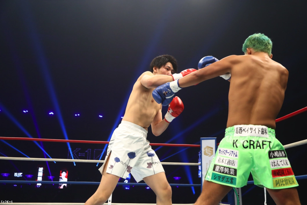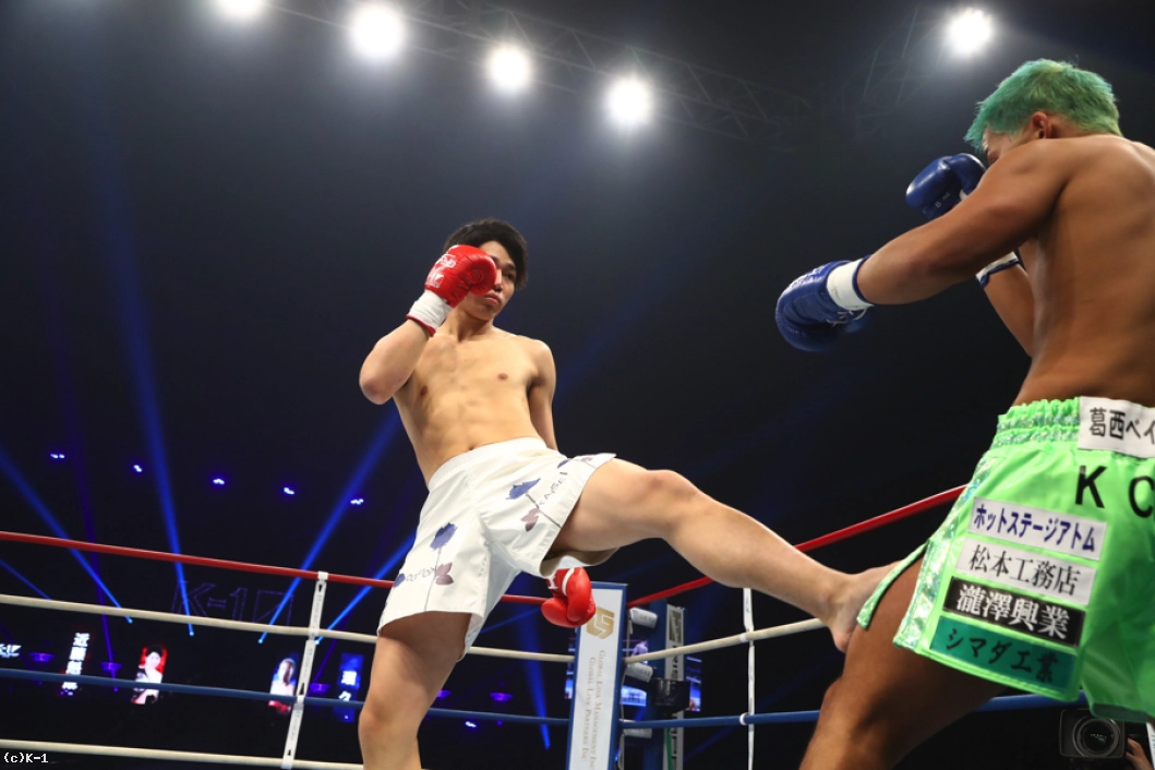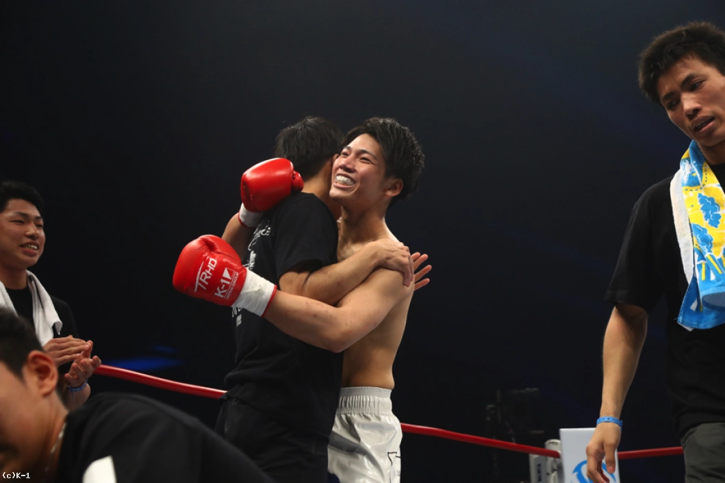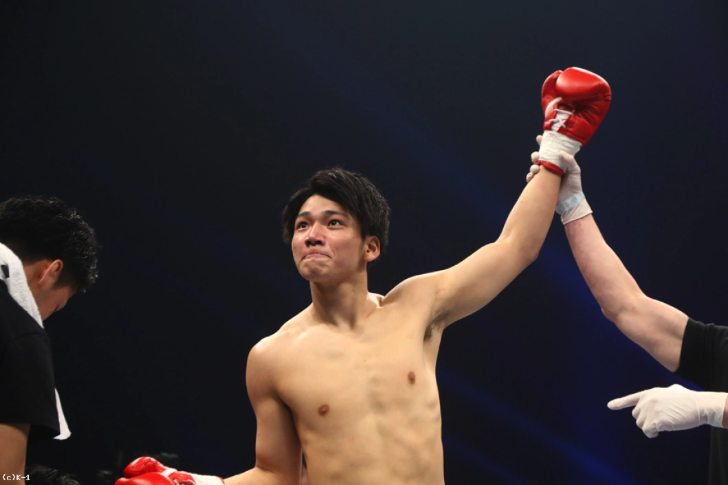 「(試合の感想は?)今までで一番いい勝ち方で、プロの戦いを見せられたかなと思います。(相手の印象は?)この前やったときより強くなってたんですけど、構えた時に勝てるかなと感じたので。今回の試合、勝つことを考えてましたけど、もっと先に目標があるので、今回は勝ってよかったなあと言うよりは、勝たないとダメだった試合でした。(これからの目標は?)来年の3月で高校を卒業するんですけど、高校生の間にK-1のベルトを獲りたいので、あと1年の間に早く獲りたいなと思います」