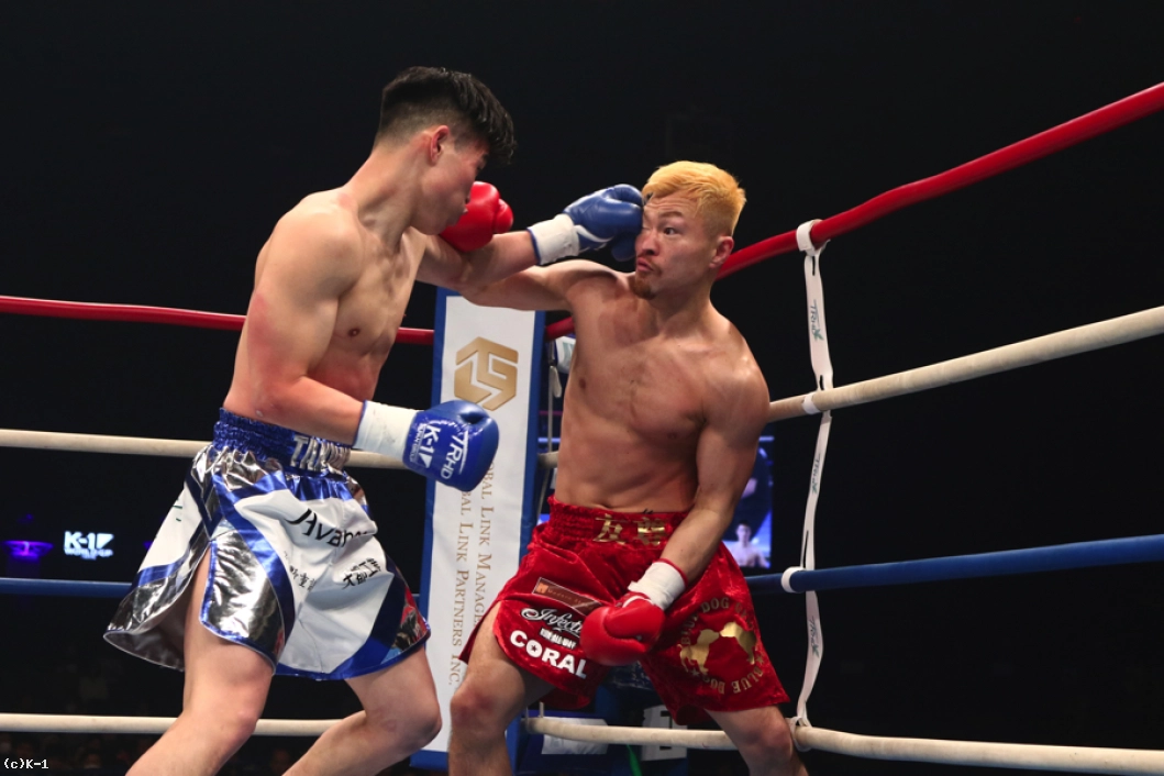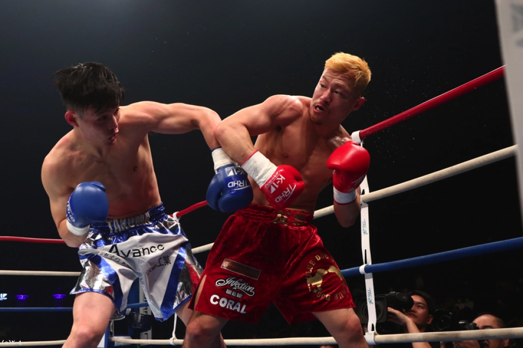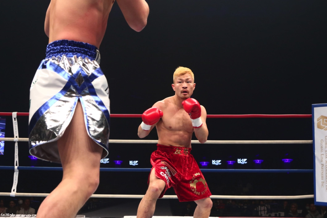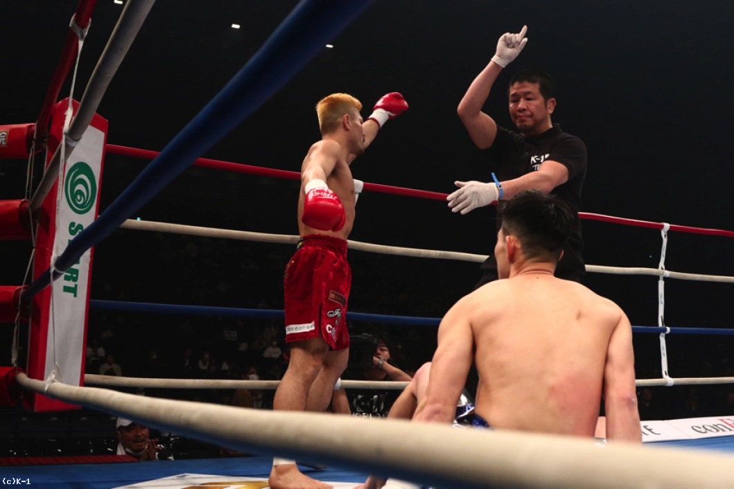 3R、倒し返さんと友尊に向かっていく川口だが、友尊はそこへ引っ掛けるような右フック。これで川口が足から崩れ、4度目のダウンを喫したところで様子を見てレフェリーが試合を止めた。