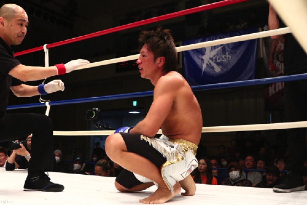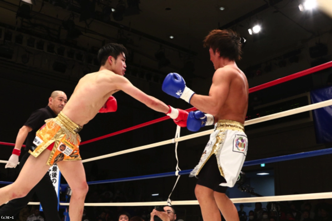 「(試合を振り返って?)蓮實選手はイメージ的に、ライト級でトップのパワーがあると思うので警戒してました。そのパワーに耐えれるなら俺の勝ちとわかっていて。はじめにガードの上からパンチをもらったんですけど、いけるぞと思いました。距離感もテクニックも俺のほうが上だし、カウンターさえもらわなかったら勝てると1R目から思ってました。(対戦前と相手の印象に変化は?)ムチャクチャ相手を研究したので、そんなに変わってないですけど。ちょっと組み付きと足払いが多かったのはイヤでしたね。(今後の目標は?)試合前に今年のKrushで一番目立つと言っていたので、いいスタートは切れたと思います。応援してくれている人のためにもがんばっていきたいなと思います」