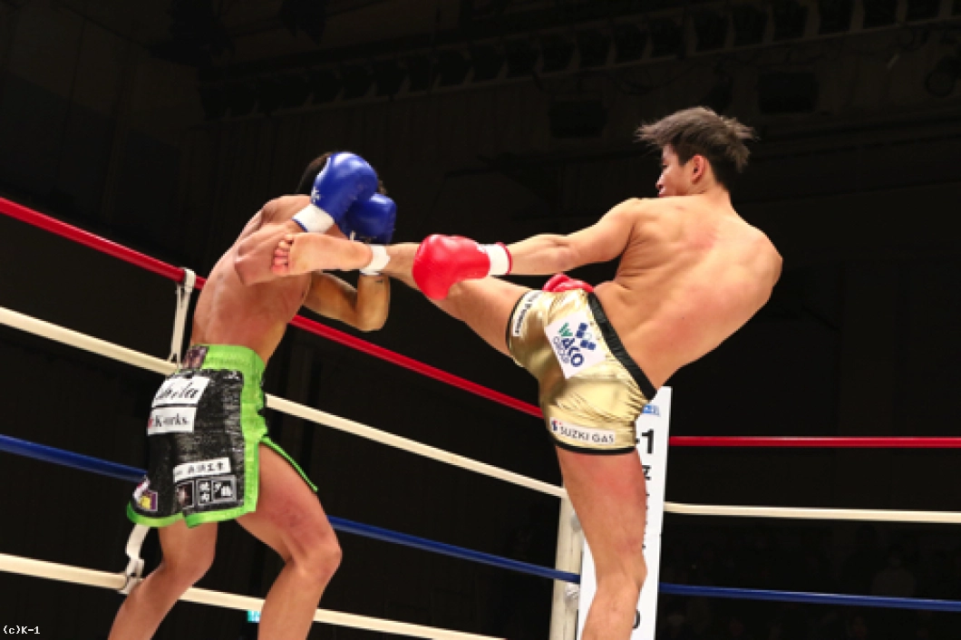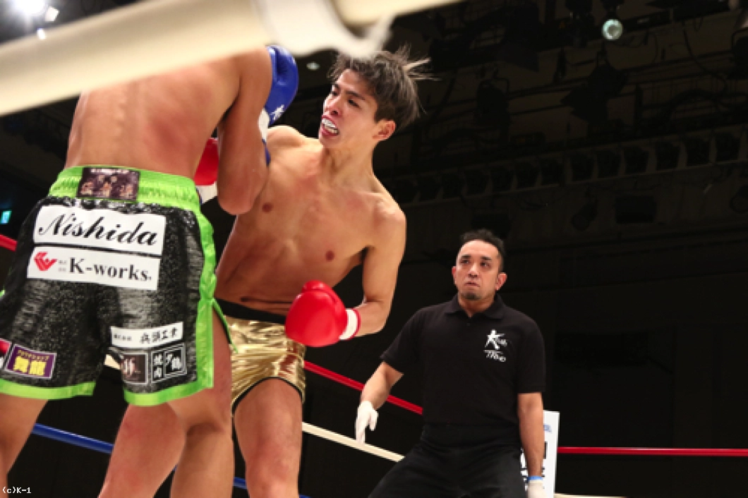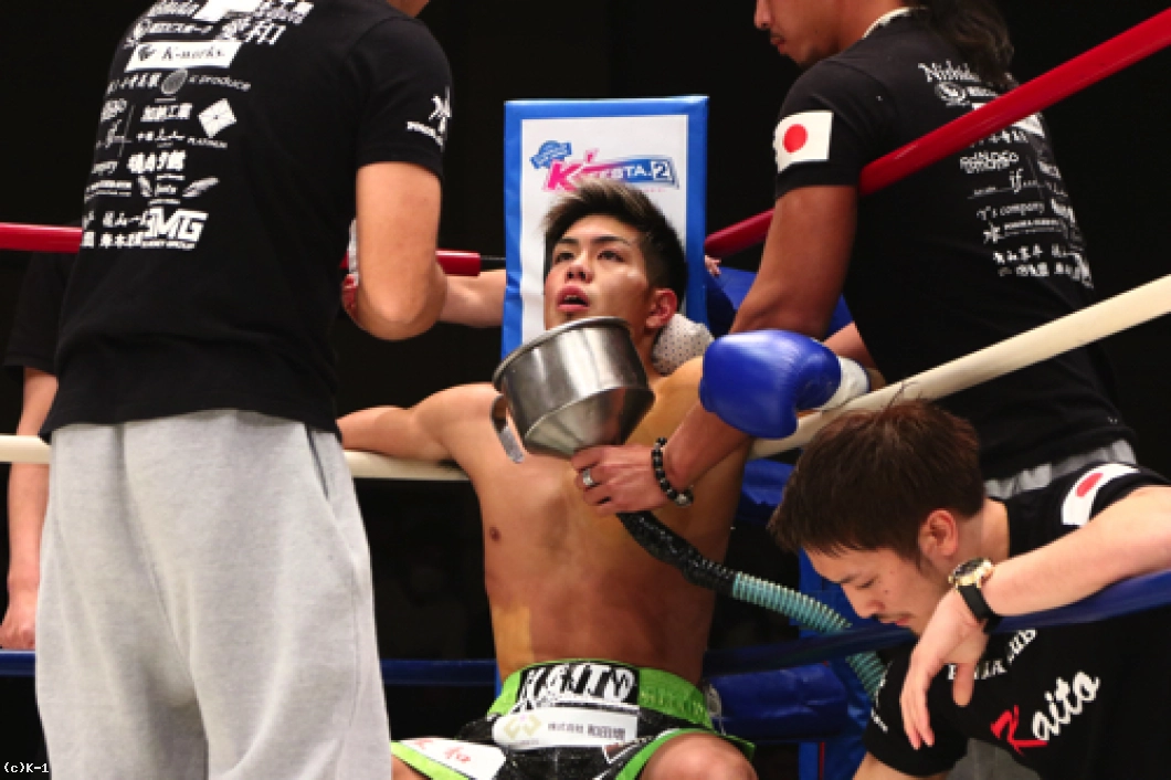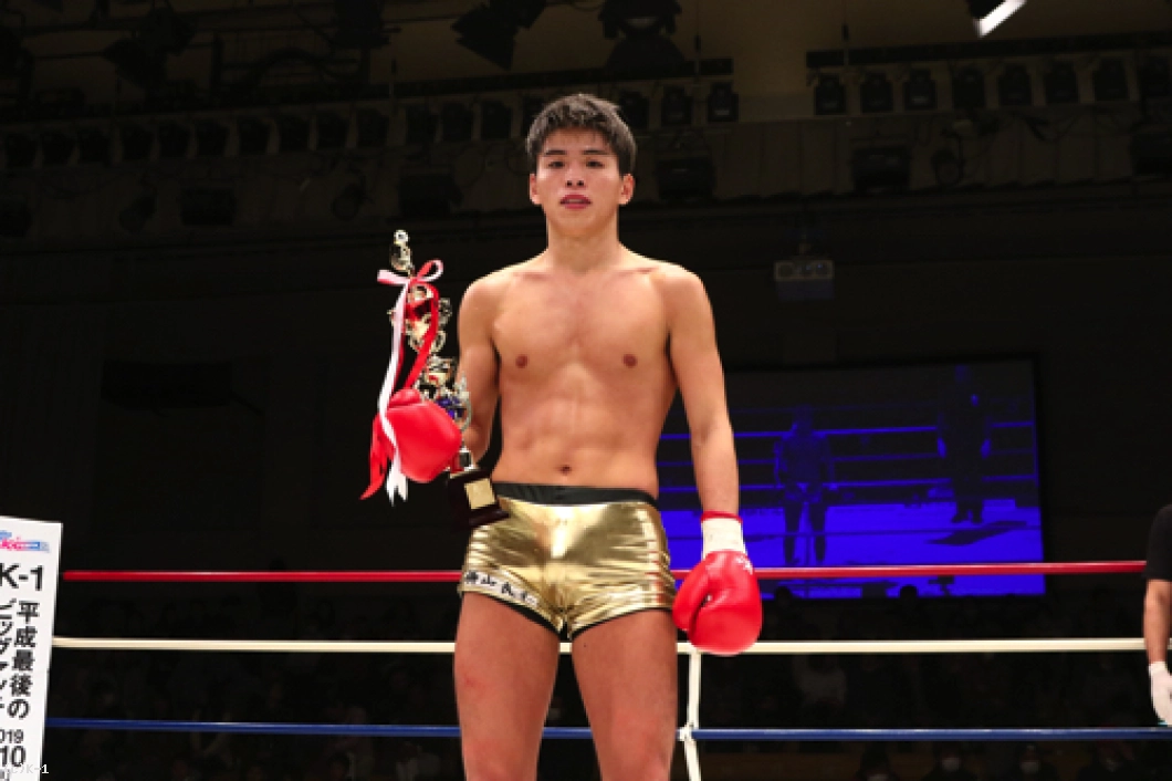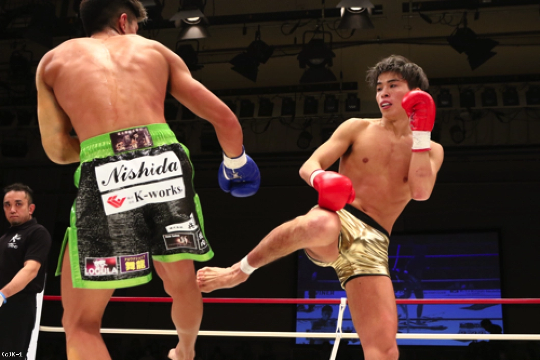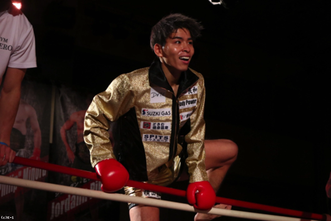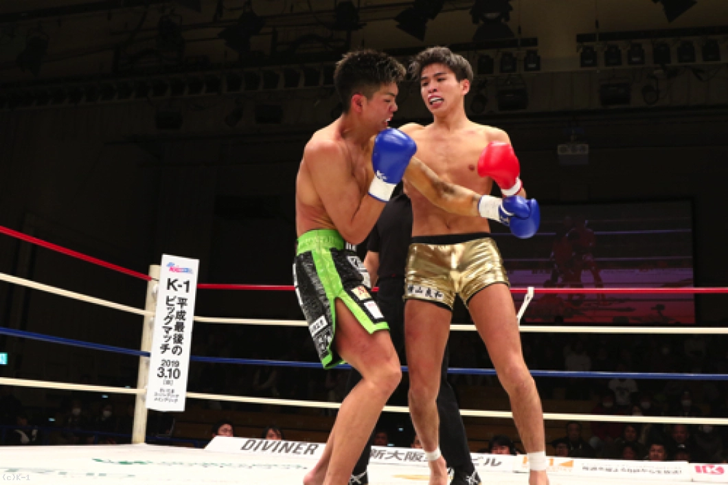 「(試合を振り返って?)自分のパンチがたまたま入って倒せたと思います。海斗選手はメチャクチャ強かったです。(対戦前と相手の印象に変化は?)変わらず強いってイメージです。どうやって倒すかが、自分の中でプレッシャーだったんで。勝っても海斗選手は凄く強いっていうイメージしかないので、これから自分もがんばっていきたいと思います。(今後の目標は?)K-1とKrushのチャンピオンを取ることです。あと、日本人トーナメントを8人で、-67.5kgでやったらおもしろいと思っていて。その一人に選んでもらえたら確実におもしろい展開になると思います」