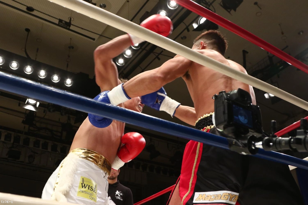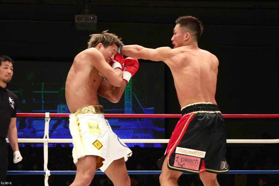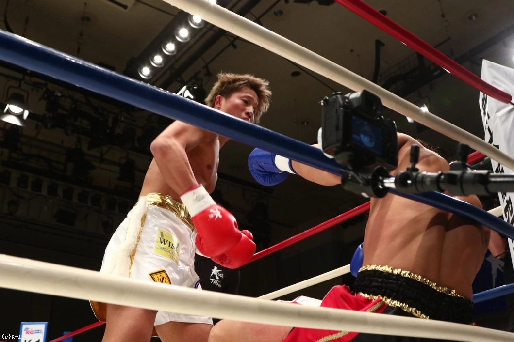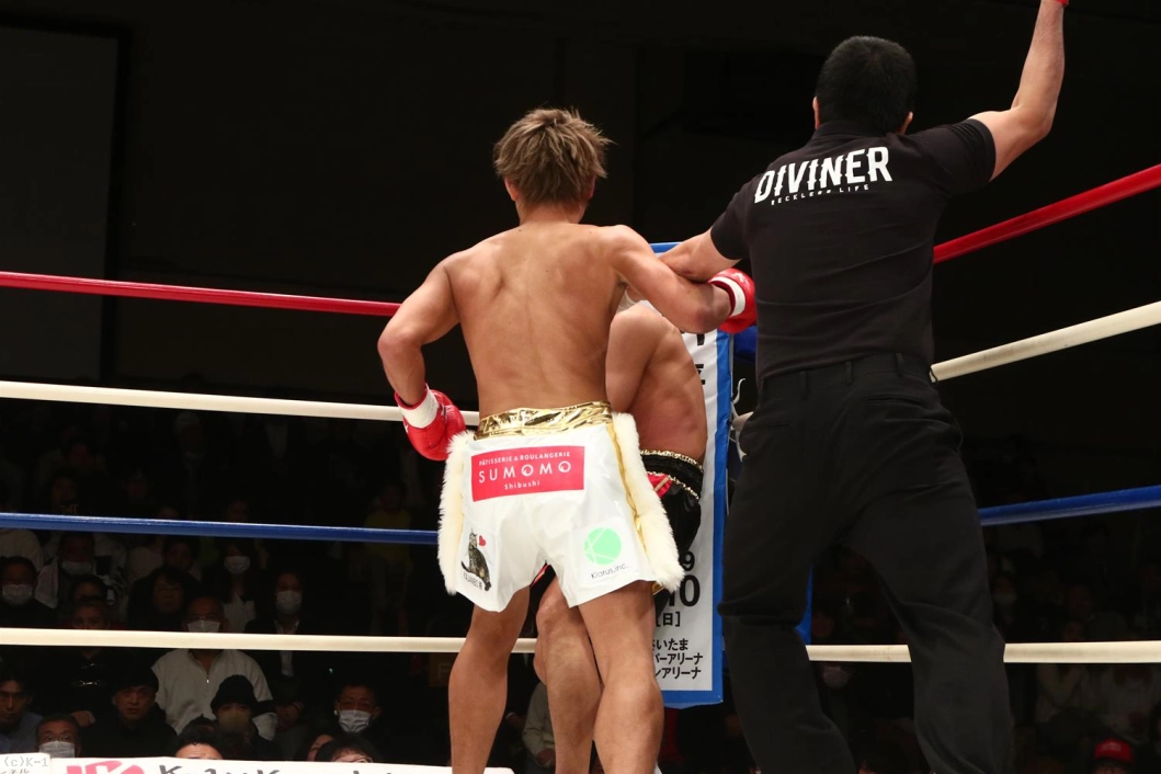 再開後、左ボディフックを再び打ち込む眞暢。しかしダメージが残っているのか、打ち合いの中で竹内の右ストレートを当てられると前方に倒れてしまい、眞暢は2度目のダウンを喫する。これで2度のダウンを奪った竹内は残り時間が少ない中で一気にパンチを連打。防戦一方の眞暢を見て、レフェリーは試合をストップした。