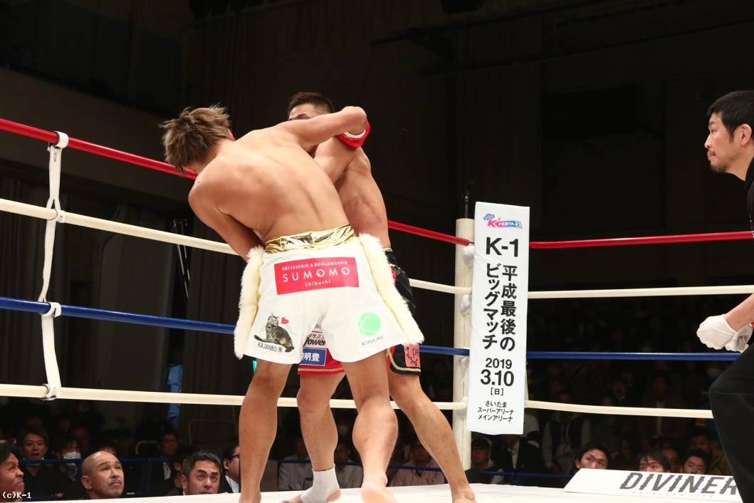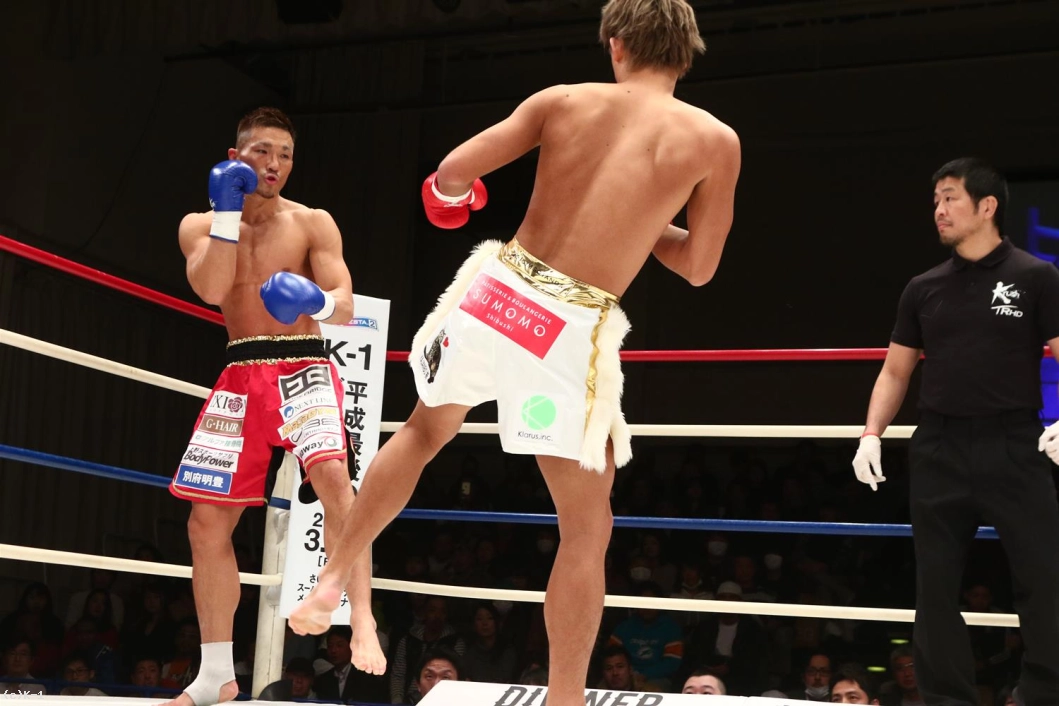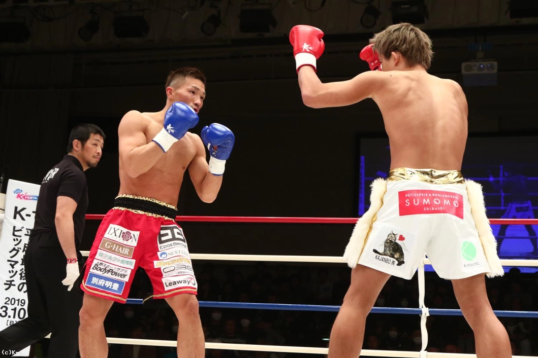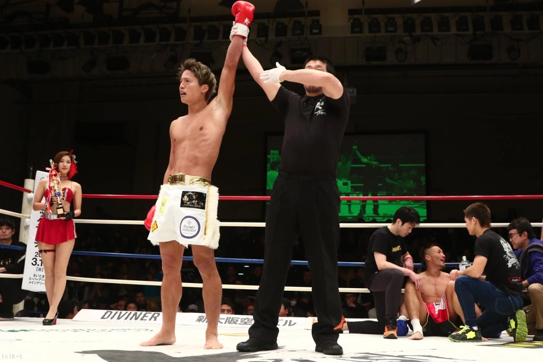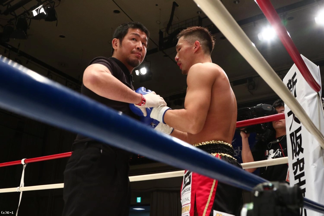 「(試合を振り返って?)久しぶりに勝つことができて安心しているのとうれしいのと、1RKOという最高の結果を残すことができて。チームキングスと、解散になったんですけどフリーホークのみんなにも感謝してます。(対戦相手の印象は?)パンチが強いと思ってたんですが、蹴りもけっこう蹴ってきて、思った以上に焦った部分もありました。でも、二回目のダウンを取ったときに残り30秒だったんで、絶対に倒しきろうと思ってラッシュかけたら、KOすることができたんでよかったです。(今後の目標は?)僕の階級のチャンピオンが同じジムの鈴木勇人選手なんですけど、鈴木選手がK-1のチャンピオンになったときに、Krushのタイトルマッチができるくらいの選手を目指してがんばりたいと思います」