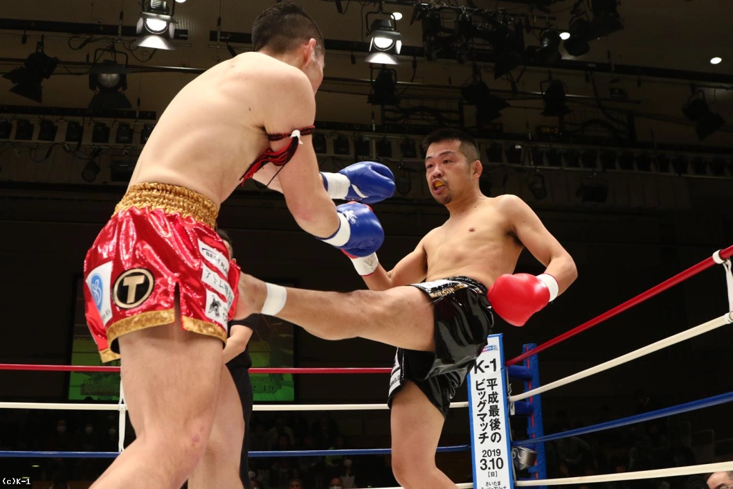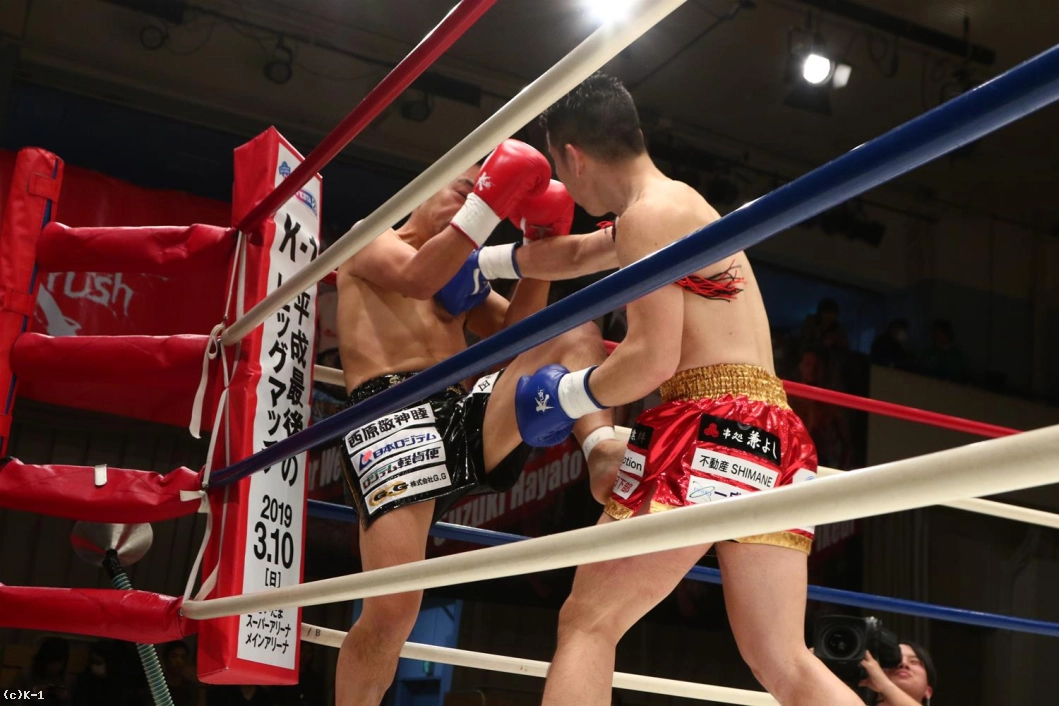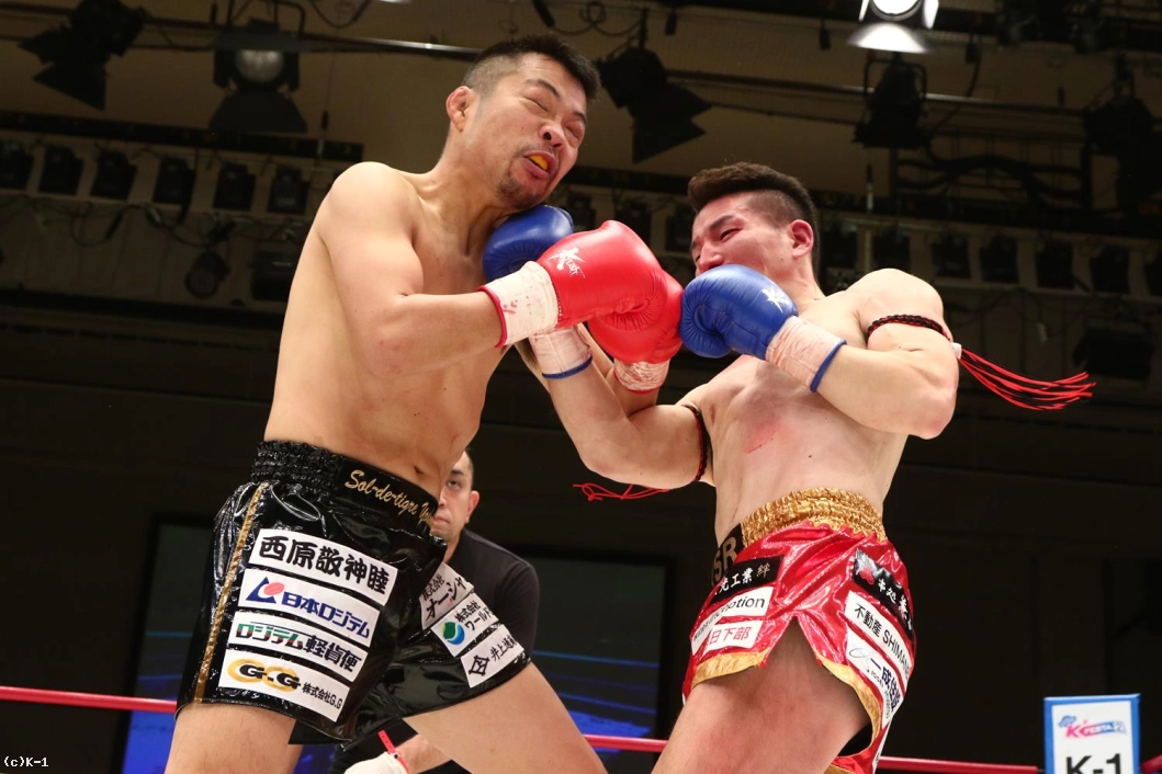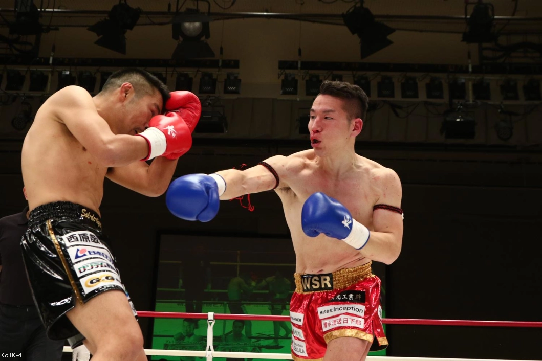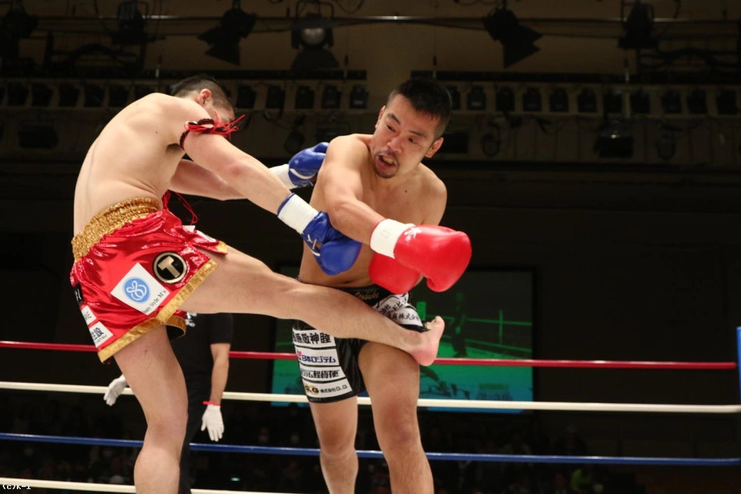 2R、接近戦でパンチ勝負を仕掛けるヨースケは右アッパーから左右のフック。聖也はこれにガードから右ローで反撃し、左フック、右ストレートも打ち返す。右ローで下がらせる聖也だが、ヨースケもこれにアッパー&フックで応戦。ヨースケはローが効いてきたか表情が険しくなってくる。アッパーやパンチに織り交ぜ自身もローを返すヨースケ。聖也も右アッパー、右ストレート、右ローとヨースケを攻めるが、残り15秒でヨースケもアッパーからストレート、ローと聖也を攻める。