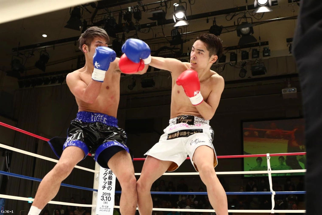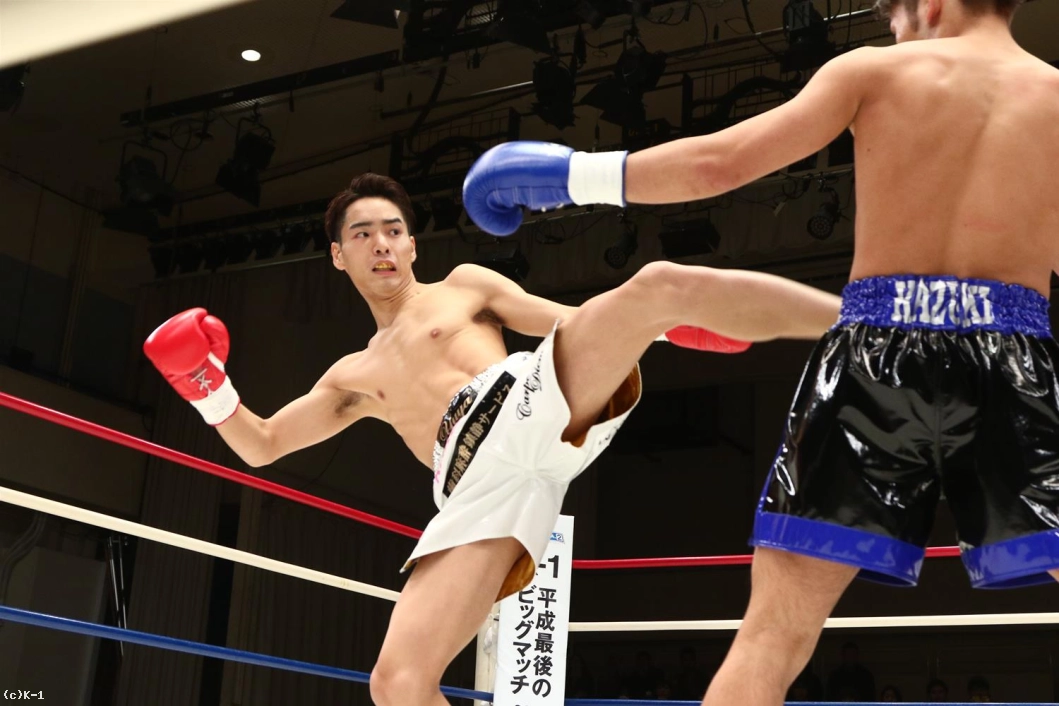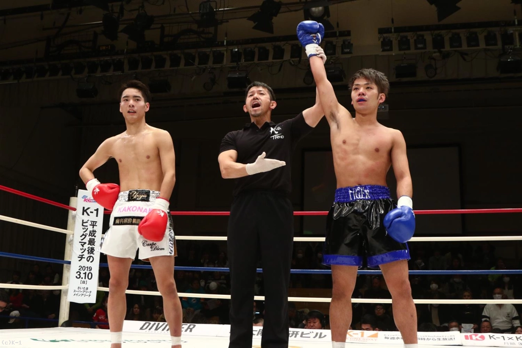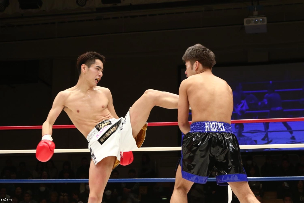 3R、藤田は離れた距離から前蹴りを腹・脚へと小刻みに送る。橋本は左ミドルを返し、藤田のわき腹に滑り込ませる。藤田が出ていこうとすると橋本は左インローでストップ。そこから前蹴りを顔面に連発で送り優勢となる。しかしここで藤田が右ロングフックをヒット。橋本がグラつき、橋本に傾き掛けた流れを藤田が手元に手繰り寄せる。パンチで迫る藤田に橋本は跳びヒザ、前蹴りと打ち返すが、藤田もやはりフックで応戦して終える。判定は3者30-29で藤田。ハイレベルな戦いを制し、デビューから2連勝を飾った。