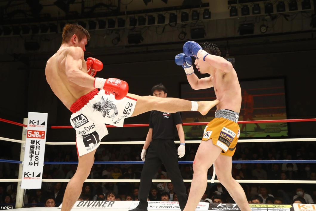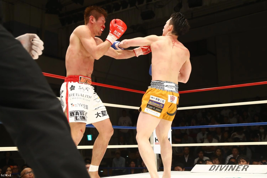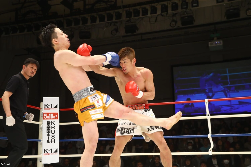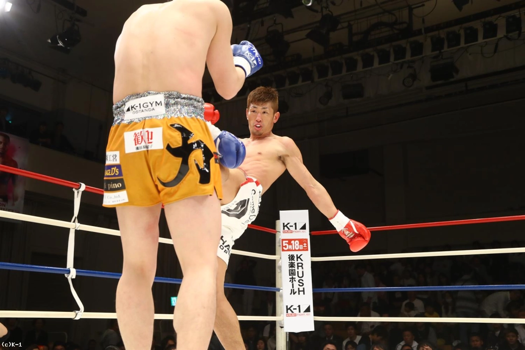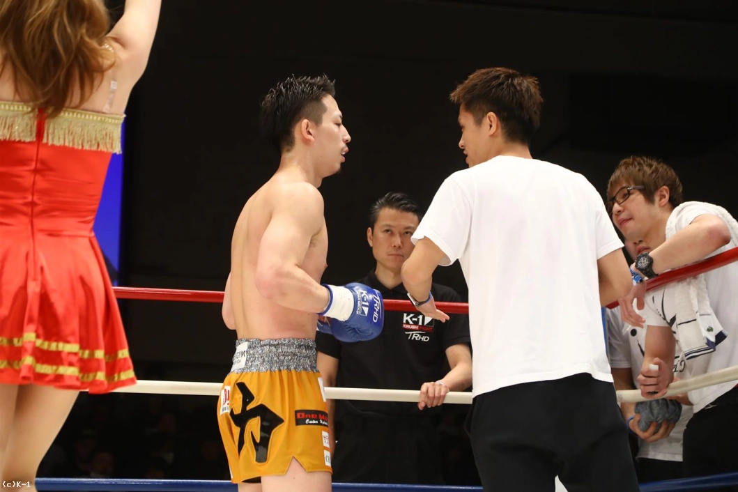 「(試合を振り返って?)疲れましたね。当分、試合はしたくないです(苦笑)。(対戦相手の印象は?)相手どうこうよりも、今回減量に失敗して足が動かなかったんですよ。その中で足をあまり使わないで、上手くパンチで戦えたのも一つの経験だと思います。(今後の目標は?)直近でKrushのタイトル、ミノルくんに無理矢理返上させて(笑)、僕が獲りたいと思いますので、応援よろしくお願いいたします」
