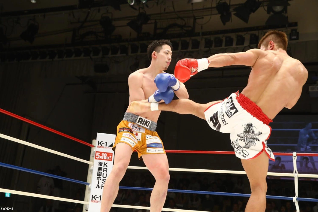 3R、鼻血が出る牧平だが、ロー・ヒザ・ミドルと蹴りを放って前に出る。松岡はこのラウンドもパンチを中心に応戦。牧平の蹴りにパンチを合わせ、その威力を半減させる。さらに松岡がフック・ストレートと連打を打ち込み、牧平はアゴが上がる。そして組みつきが多くなり牧平はレフェリーからイエローカード、減点1を受ける。最後は松岡がアッパーにストレートを織り交ぜた連打で牧平を襲って終了する。判定は29-27、30-27、29-27の3-0で松岡。蹴り対決かと見られたが、パンチを軸に戦い勝利した。