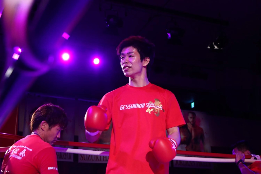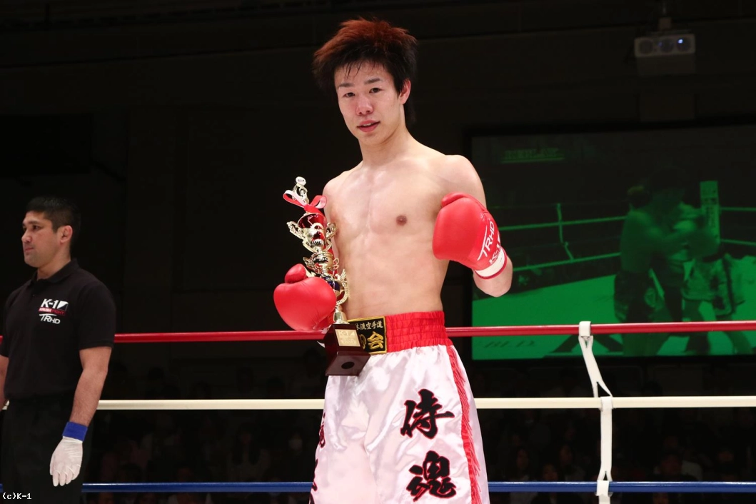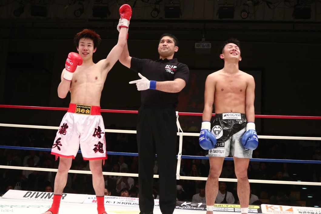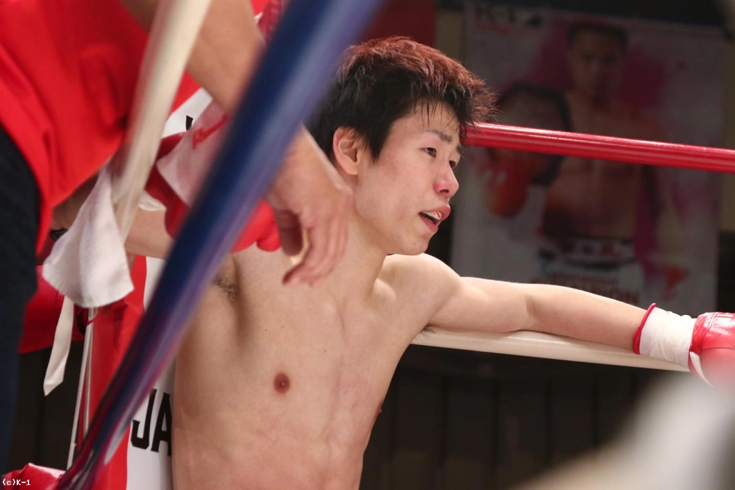 「(試合を振り返って?)Krushの第100回の大会に出られて凄い光栄です。一試合目からKOが続いてたので、僕も続きたかったんですけど、龍斗選手が強くてなかなか倒せなくて。勝ててよかったです。(対戦相手の印象は?)凄いスタミナがあるっていうのはわかっていて。僕もスタミナを強化してきたんですけど、ちょっと今日は動きが悪くて。(今後の目標は?)今回、ちょっと不甲斐ない試合というか、自分の中ではいい戦いはできなかったですけど、大阪のK-1に出られるようにもっと練習を積みたいと思います。押忍」