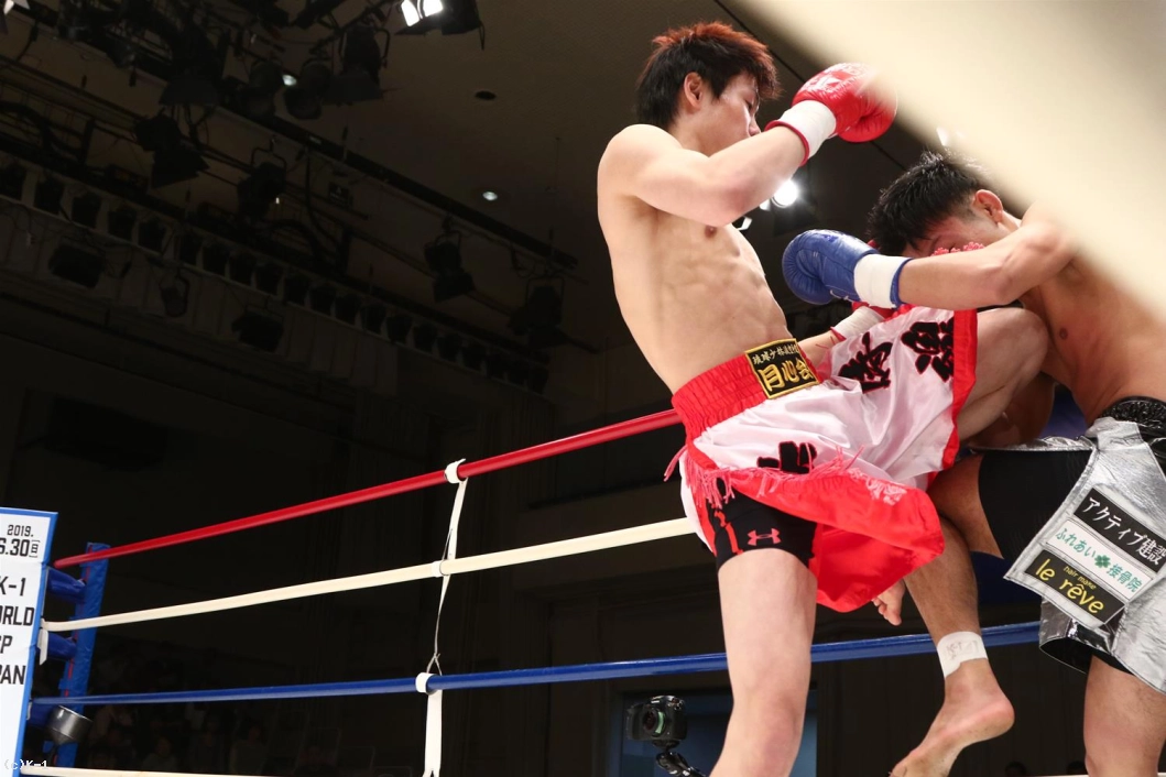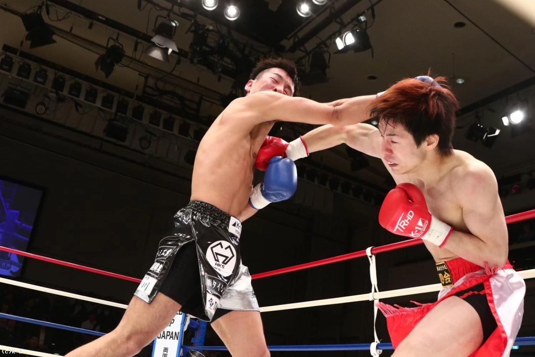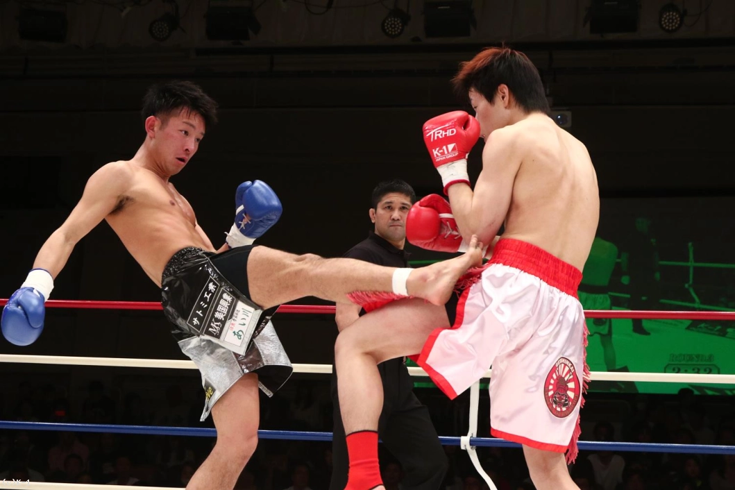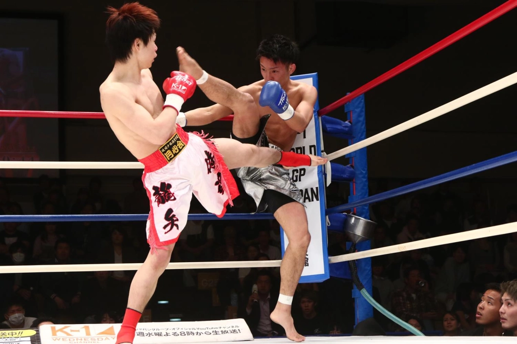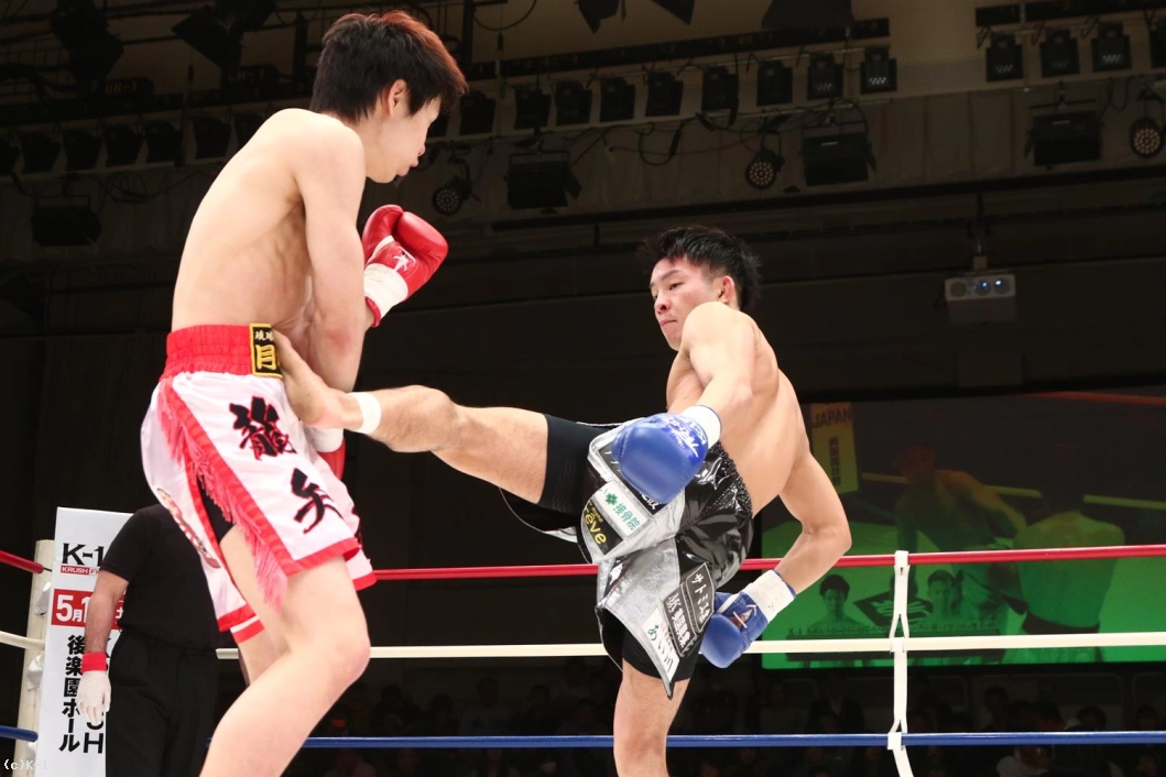 2R、椿原は1Rと変わらず速いテンポで攻撃を仕掛ける。龍斗も劣勢ながら冷静さを崩さない。椿原はボディストレートから左ハイキックを当てるが、これは当たりが浅い。椿原は右ストレートを当てつつ、ヒット&アウェイで深追いしない。龍斗も右ストレート、左フックと徐々にパンチのヒットを増やしていく。