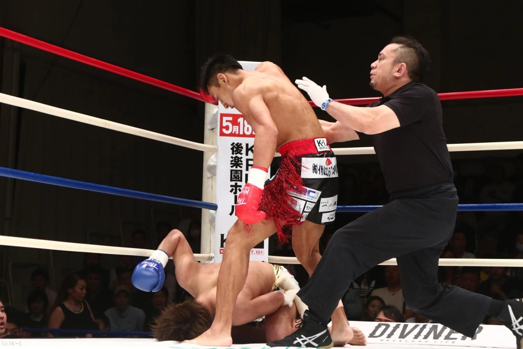 2R、平山は変わらず左ボディフックと右ストレートで襲い掛かる。竹内はダメージがあるか攻撃に力が感じられず、反撃の左フックも平山にかわされる。竹内をコーナーに詰めた平山はヒザの連打で猛襲。これで竹内を沈めてKOした。