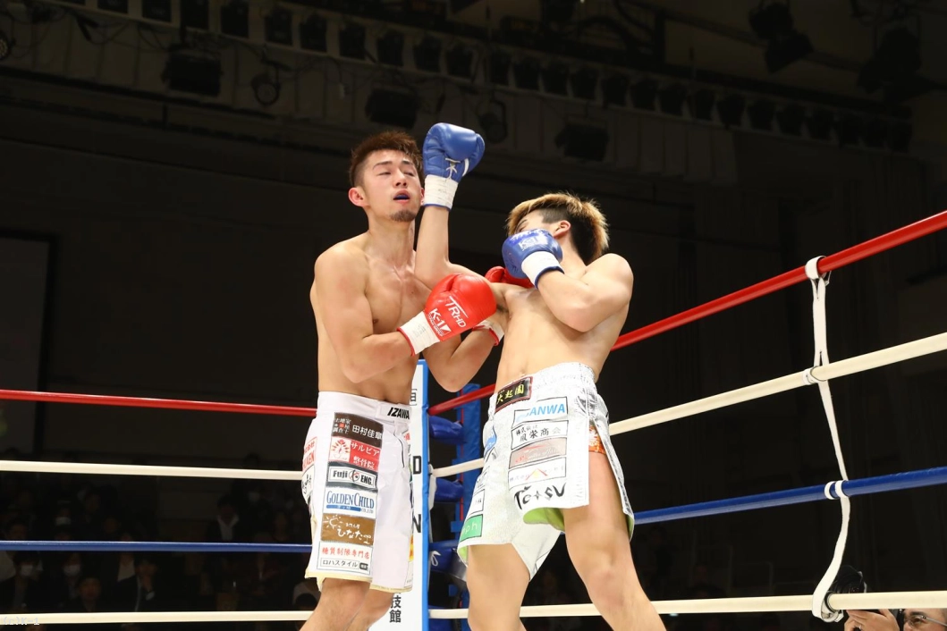 3R、TETSUはプッシングとジャブ・ワンツーで伊澤を下がらせハイキック。伊澤もTETSUを下がらせ左右のローを打ち込む。前に来る伊澤にTETSUは手を伸ばして押し返しながらパンチを打ち込む。伊澤の圧力が効いて来たか、伊澤のローのヒットが目立ってくる。しかしTETSUは後ろ回し蹴りを見せ、パンチの連打で伊澤を下がらせる。TETSUはラウンド最後、左右ストレート、ハイキックと見舞って終える。判定は30-29、30-29、30-28の3-0でTETSU。実績上位の伊澤から勝利をもぎ取った。