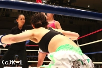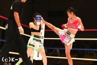 3R、左右ストレートで踏みこもうとする豊嶋だが、MOEはそこに前蹴りを合わせ思ったようにさせない。豊嶋が踏み込めないでいるとMOEはそこへ右ローキック。中盤には豊嶋の前進をサイドにかわし、ワンツーもヒットさせる。MOEは前蹴りで距離感を把握しており、そこから右ストレート・右ローと当てて試合を終える。判定は30−28、30−28、30−27の3−0でMOE。前蹴りを軸に戦い距離を制して勝利した。