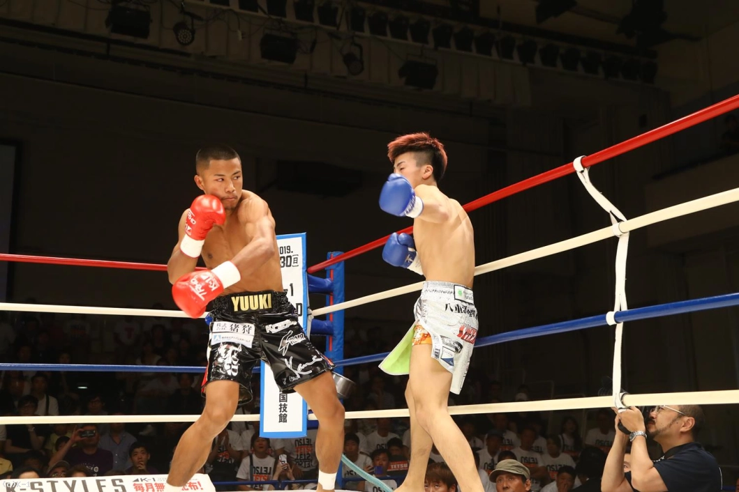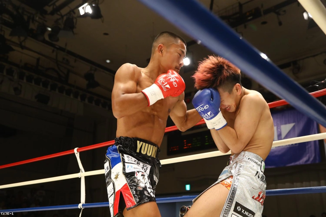 1R、前蹴り&スピードで距離を取らんとするTETSUだが、江川は左フックを上下に打ち分けて右ストレート、右ボディフックと猛攻。被弾の見られるTETSUだがヒザを突き上げ、これをしのごうとする。しかし江川がアッパーを織り交ぜ、右ストレートを伸ばすとTETSUはアゴがのけ反る。そして江川が右ストレートからの左フックを決め、江川は遂にTETSUをダウンさせる。立ち上がったTETSUに江川は攻め手を緩めず、ヒザをかわしつつ右フックを決めダウンを追加する。江川はさらに猛攻すると左アッパーで3度目のダウンを奪ってフィニッシュ。圧巻の初防衛を果たした。