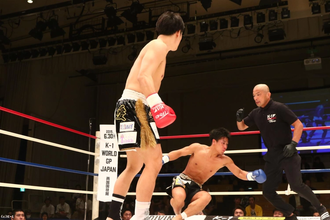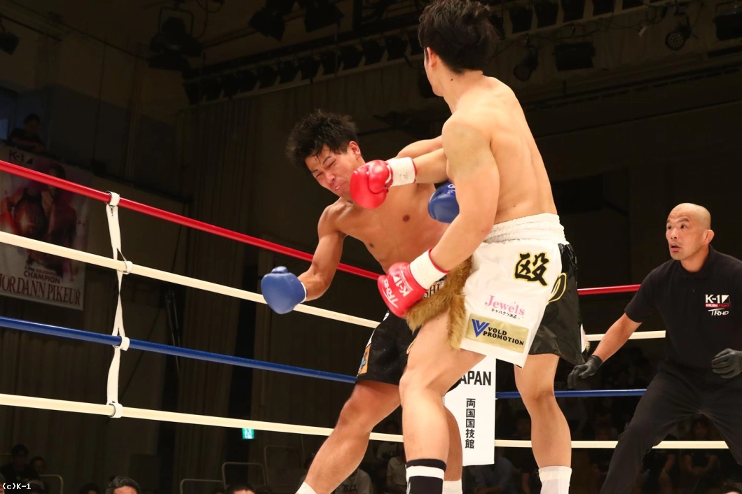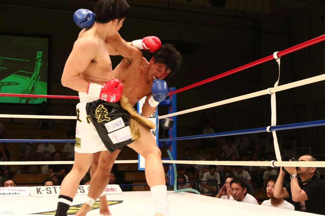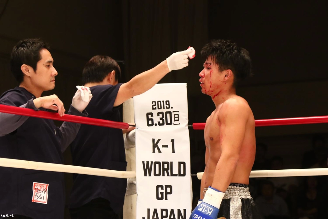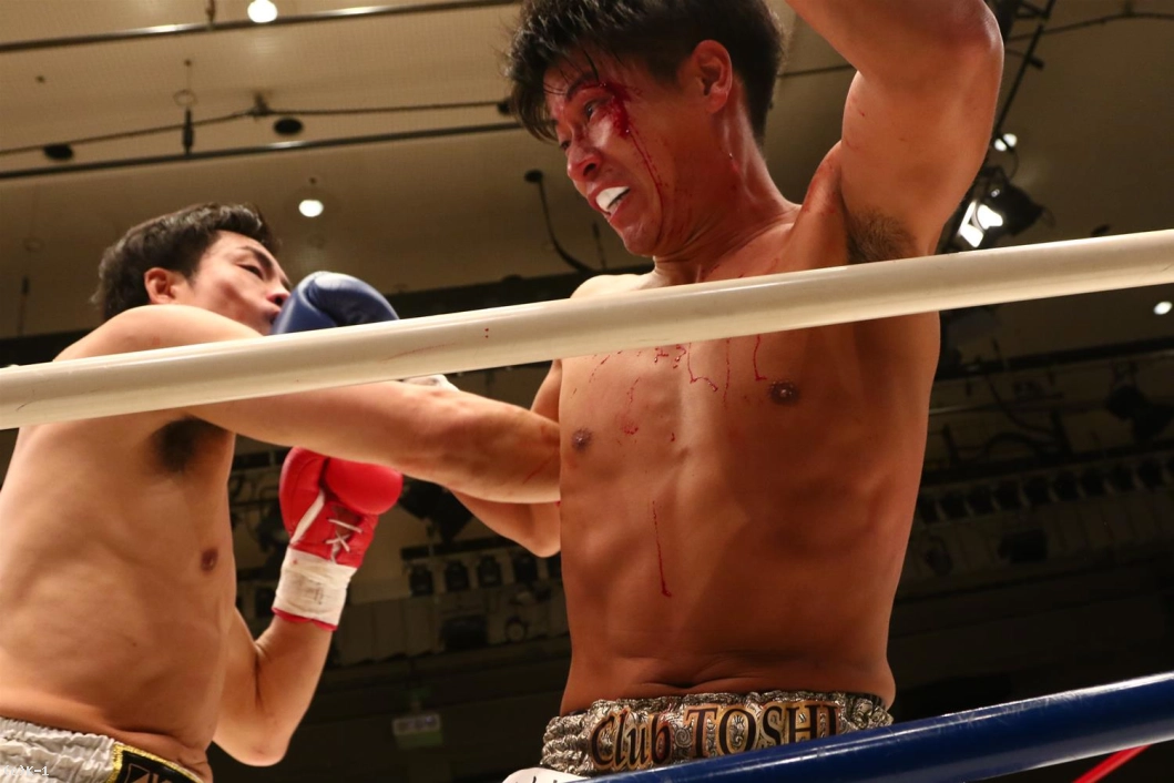 立ち上がってストレートで反撃する竹腰だが、左目じりにカットが見られドクターチェックが実施される。再開すると、竹腰は右ストレートを強振して前に行くが、斉藤が逆に右ストレートを当てて腰砕けに倒しダウンを追加する。後がない竹腰はガムシャラに拳を振るって向かうが、再び左目付近の傷が開き血が出てきてしまう。2度目のドクターチェックが実施されここでストップ。斉藤のTKO勝利となった。
