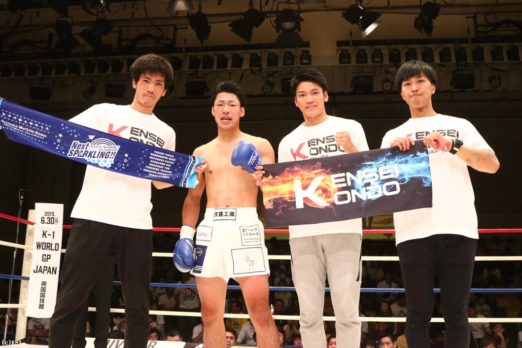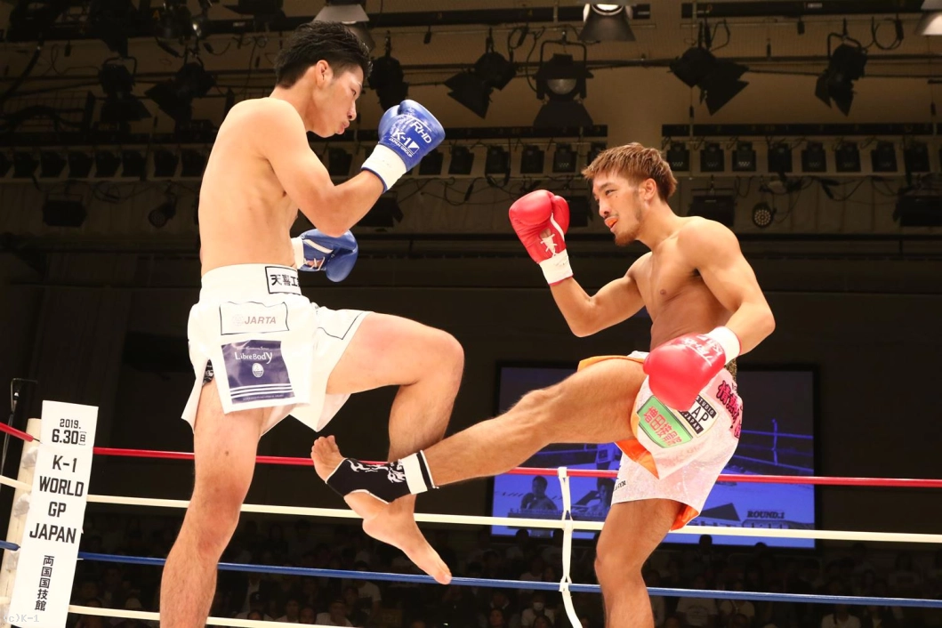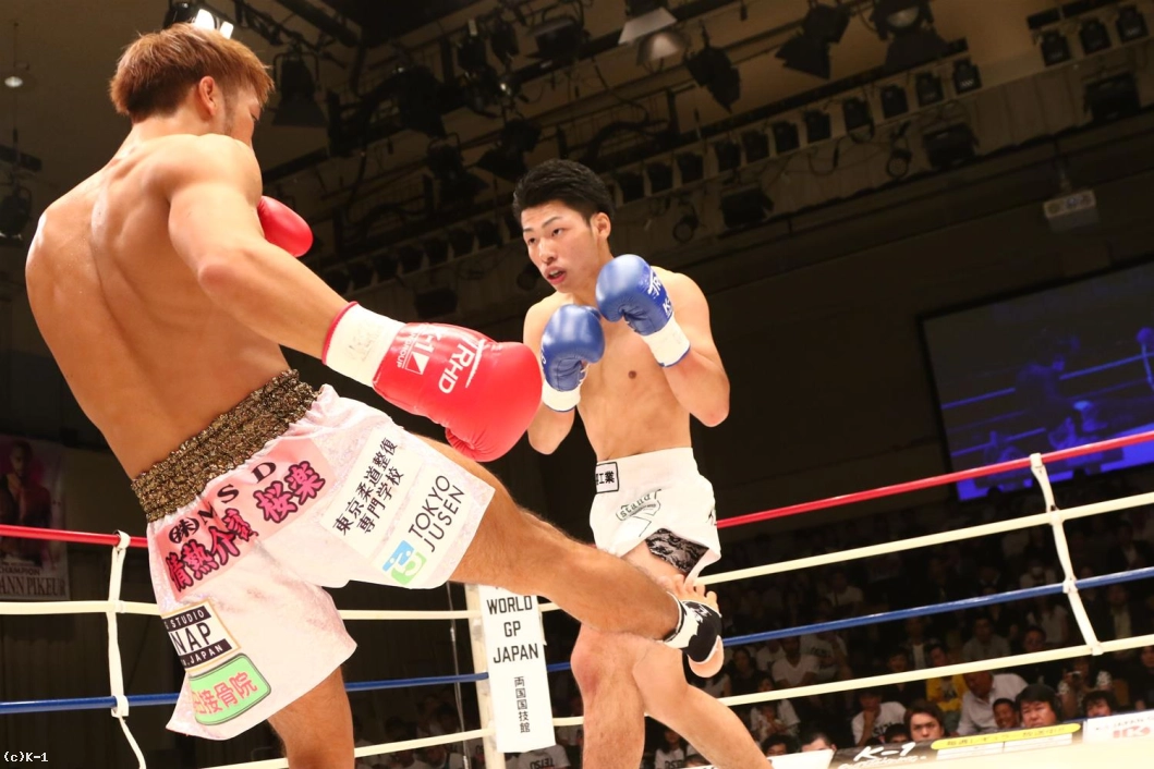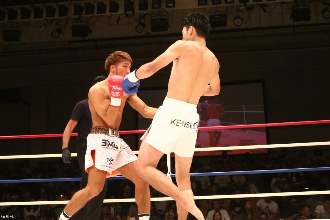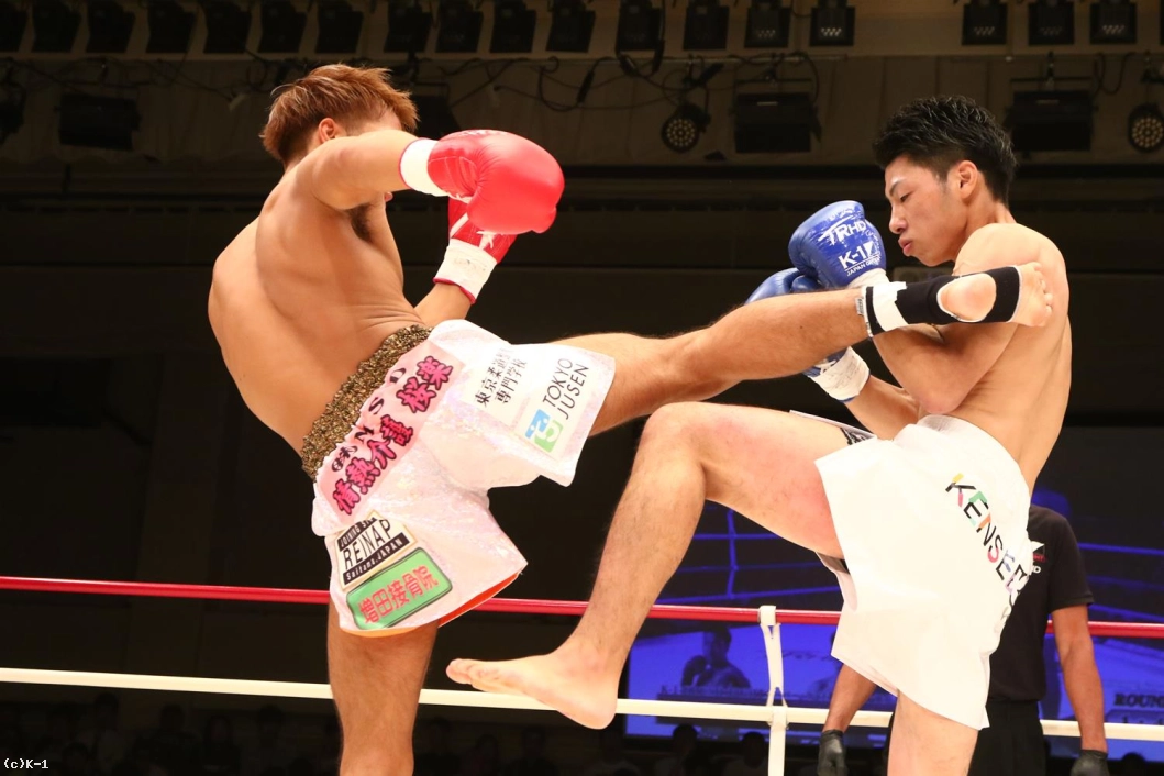 「(試合を振り返って?)FUMIYA選手が計量をクリアできなくて、ちょっと怖い部分もあったんですけど、勝ててよかったです。(対戦相手の印象は?)ローが強くてパワーがあったんで、落ち着いて冷静に戦おうと意識して練習してきました。(今後の目標は?)たくさんの応援ありがとうございました。8月にやるK-1大阪に(近藤)魁成と一緒に出て、勝ちたいと思います」