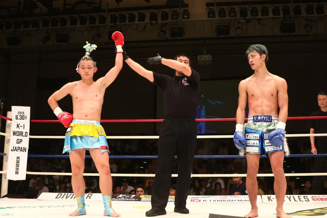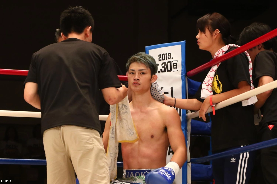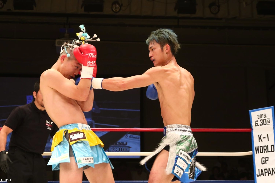 「(試合を振り返って?)まず、みなさんに謝りたいですね。ずっとKOすると言っておいて、こんなしょっぱい試合になっちゃって本当にすいません。判定勝ちでしたけど、俺の中では全然。前回よりもダメな試合だと思います。前回の反省を踏まえて、今回挑んだのに何も出せなくて。またすぐ出直します。KOできるように練習してきてるんですけど、まだ全然できないので。自分が弱いってことがまたわかりました。本当に反省の試合です。(対戦相手の印象は?)パンチがやっぱり重かったです。一発がありました。(今後の目標は?)KOすることですね。KOすることが、いまの自分の目標です。上に行きたいとかじゃなくて。もちろん、K-1の横浜アリーナ大会に出たいという気持ちはあるんですけど、そんな言える立場でもないので。組んでもらった試合で倒せるように練習してきます。本当にがんばります、今日はすみませんでした」
