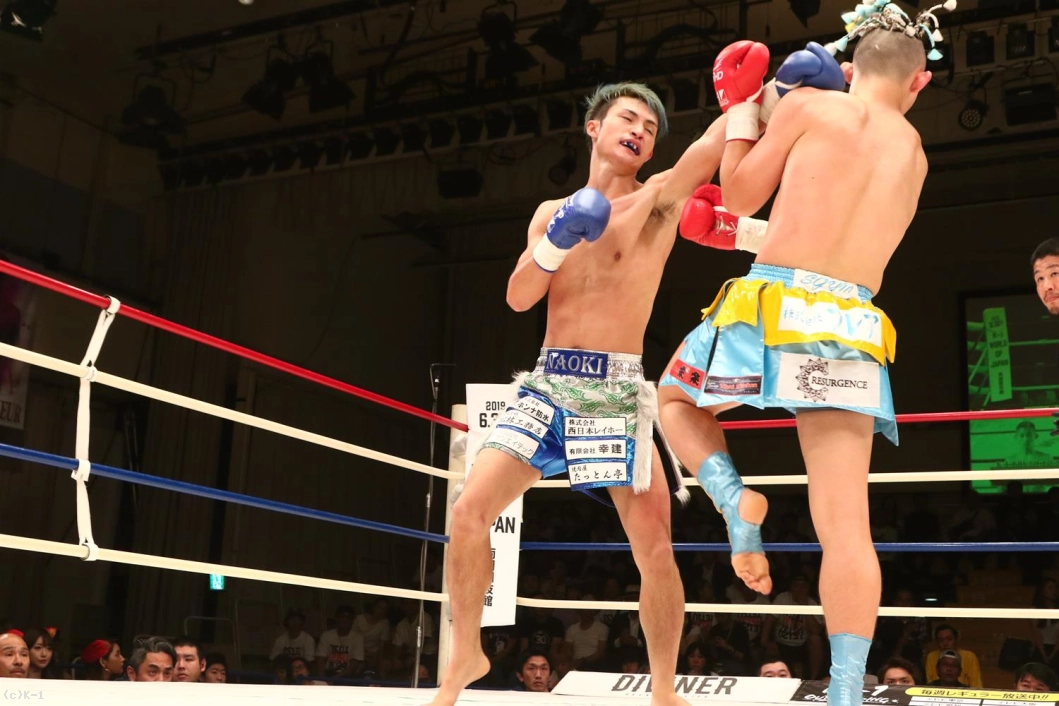 2R、髙橋はやはり距離を作り右ストレート、強烈な右ローで森坂を迎え撃つ。だが、森坂は止まらず髙橋を追っていく。髙橋は距離があくとロー・ストレートにヒザ蹴り。そして自身の攻撃を当てるとスッと下がり、あるいはサイドへのステップで森坂の反撃をヒットさせない。森坂は距離を詰めて左ボディ、右ストレートと当てて終える。