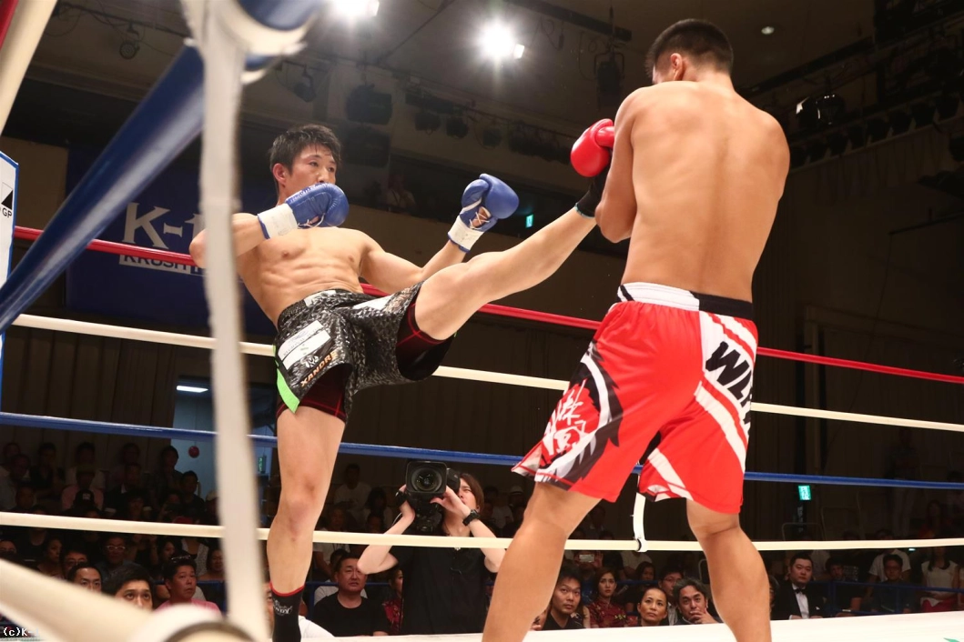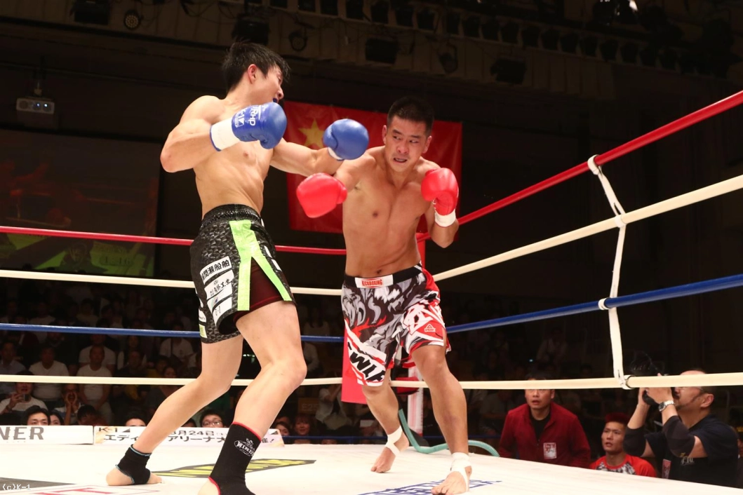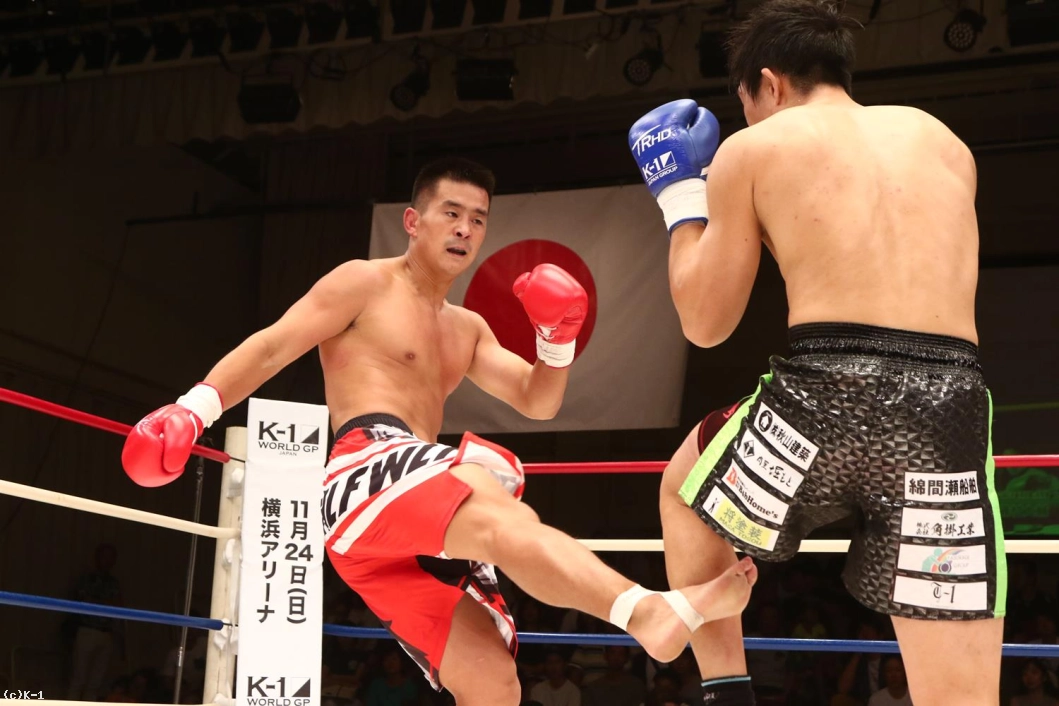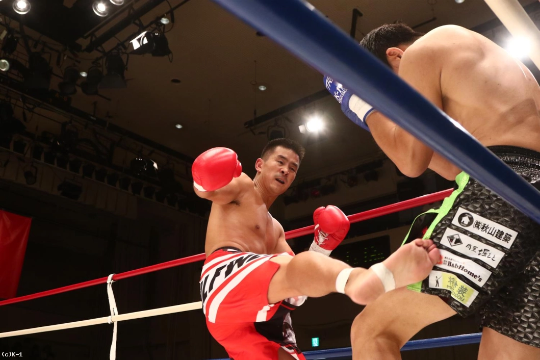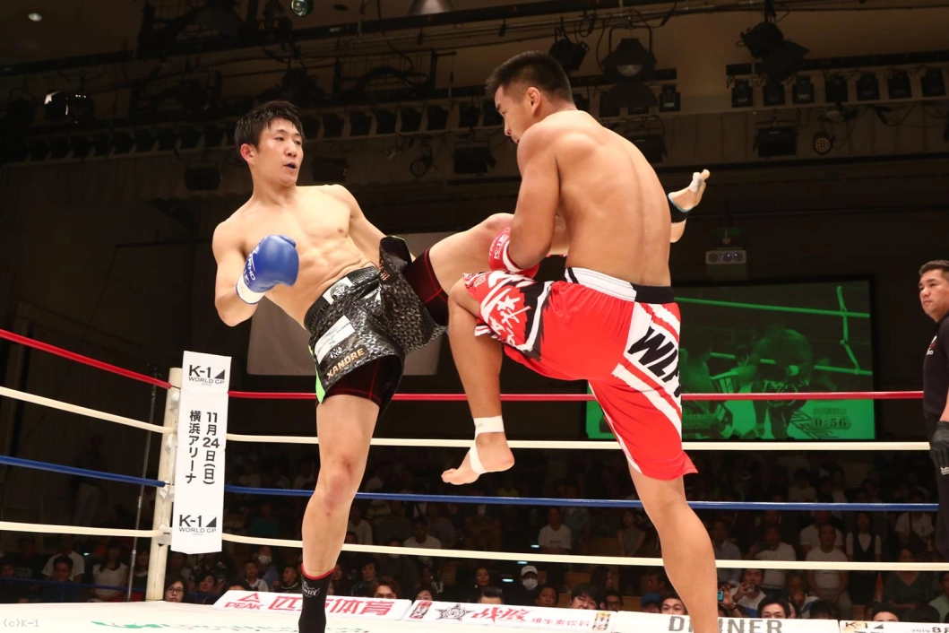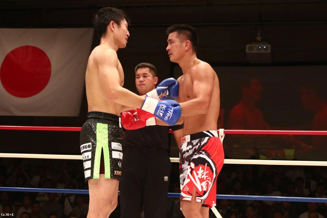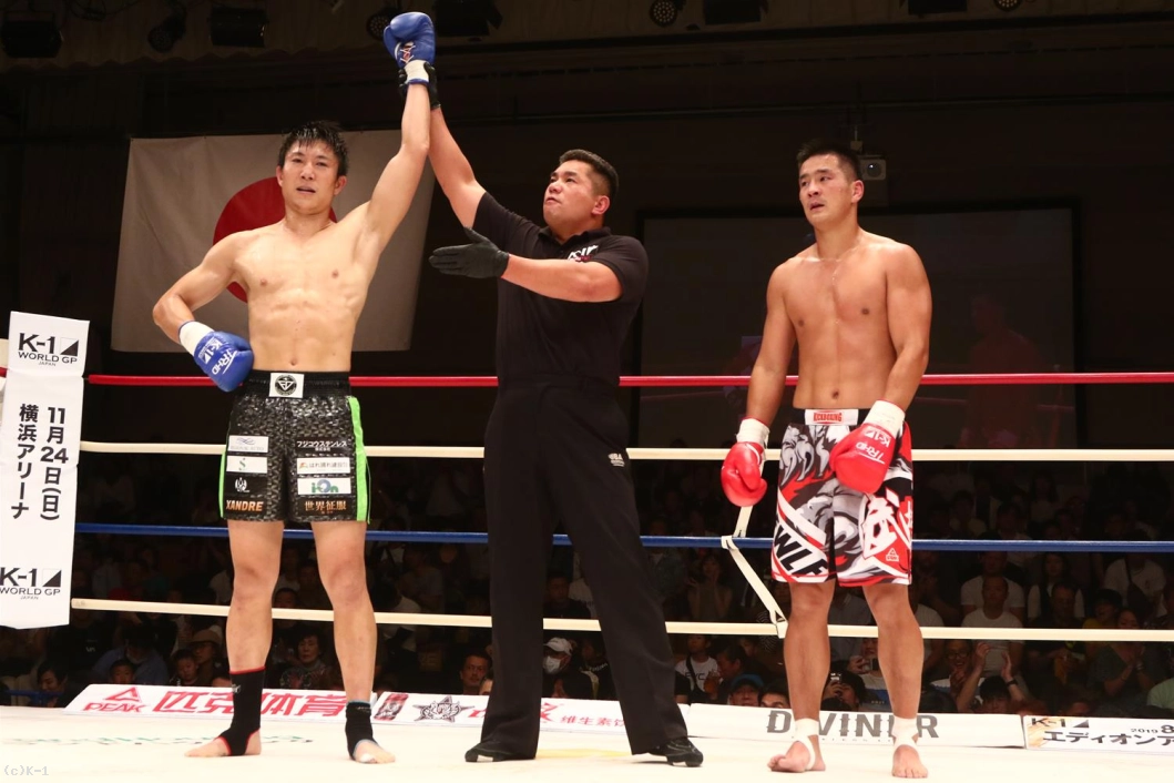 「(試合を振り返って?)とりあえず勝ててメチャクチャ、ホッとしてます。いろいろ背負う試合だったので。移籍して一発目の試合目っていうのもありましたし、中国の選手には前回も負けてますし、前戦も負けてたんで、絶対に勝たなきゃいけない試合でした。相手がけっこう有名な選手だったので、気持ちを入れて挑みました。(対戦相手の印象は?)映像で観るとメチャクチャ、パンチとローでガンガン前に出てくるんですけど、今回はそれを活かさない戦法で戦うのを意識して。そんなにメチャクチャやりづらいという印象ではなかったです。(移籍先のK-1 GYM SAGAMI-ONO KRESTの練習の成果が出た?)やっぱり、今日の大会で大将戦に出る卜部功也選手をはじめ、山崎秀晃選手、佐々木大蔵選手、KRESTには世界トップレベルの選手がたくさんいるので。そのかたがたと練習できているのは大きかったと思います。(今後の目標は?)今後もこのままベルトを目指して突き進みたいと思います」