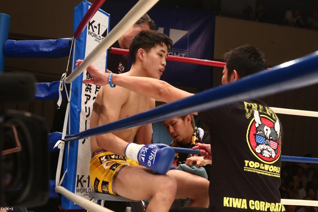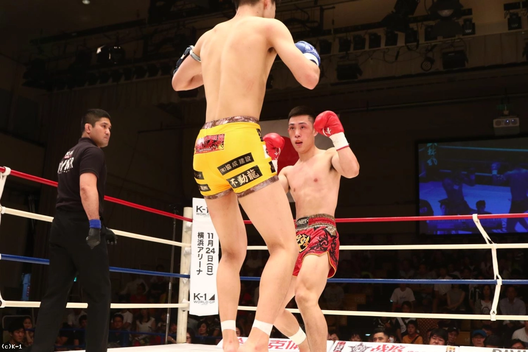 3R、ボディストレートとローからプレスせんとするジーウェイに瓦田もミドルとヒザで応戦する。得意の跳びヒザも繰り出す瓦田だが、ジーウェイもすぐ自身の得意技でもあるこの跳びヒザを返し、右ローで瓦田にダメージを与える。ジーウェイはステップが軽快なままでバックブロー、バックスピンキックと瓦田を襲い、さらに右ローを追加して終える。判定は30-29、30-27、30-29の3-0でジーウェイ。昨年佐々木大蔵に敗れた雪辱を果たし、まず初戦は中国が制した。