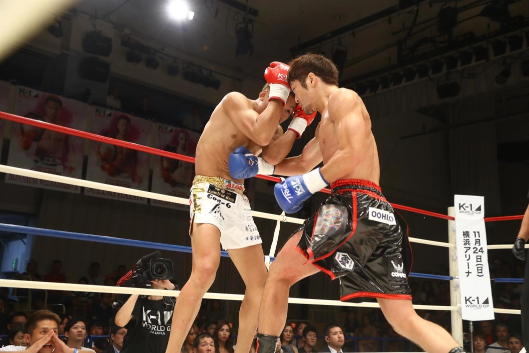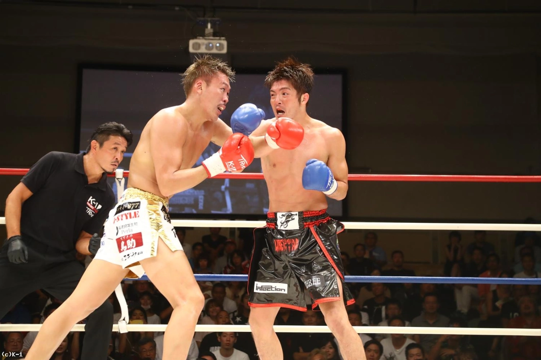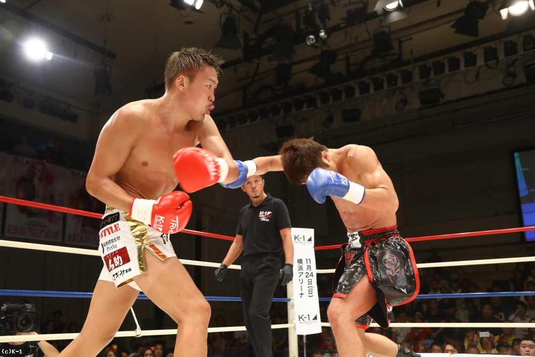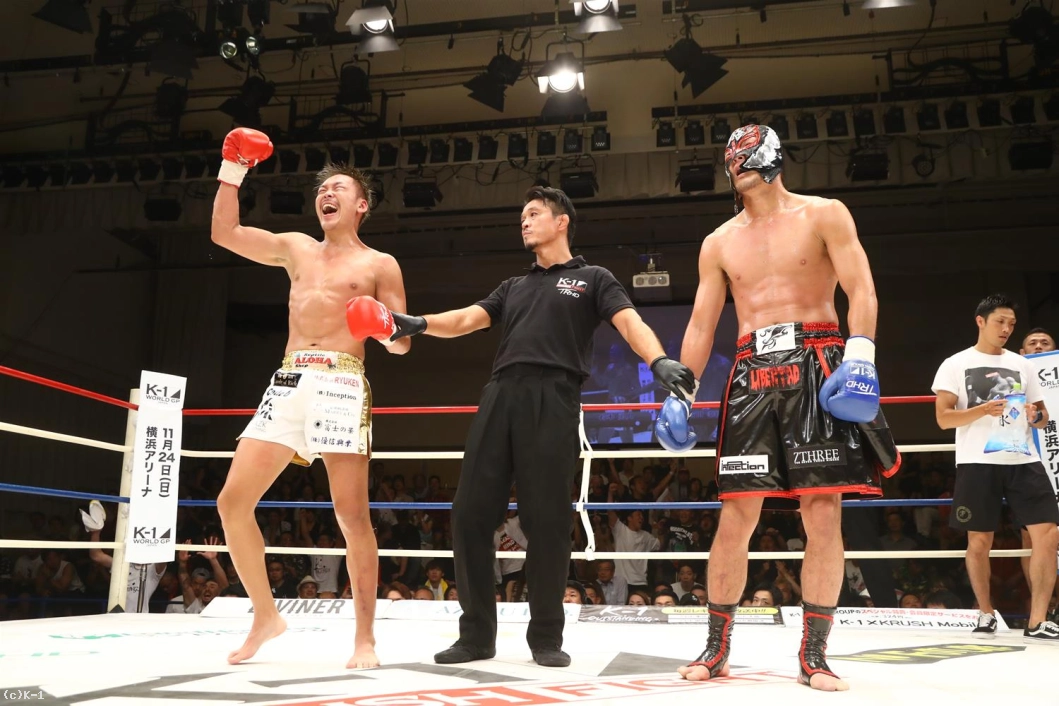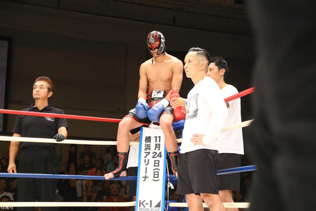 「(試合を振り返って?)すごい気持ちいい試合ができました。(本戦と延長は取れたと思った?)延長は取られたと思いました。本戦が取れてたらなというのはありますね。悔しいというよりも、出し切ってスッキリしました。鈴木勇人というチャンピオンが相手だったからなのか。(対戦相手の印象は?)しんどい試合になるのは予想してましたけど、ここまでとは思わなかったですね。僕は鈴木勇人という人間がすごく好きで、ちょこちょこ会ったりしてたんですよね。試合が決まる前とか。たまたま、行きつけの銭湯が一緒だったり。彼がジムに来たときに、僕がミットを持ったりもしてたので。だから、スッキリした気持ちなのかなって思いますね。(試合後の会話は?)ざけんじゃねえよ、何勝ってんだよって言いましたね(笑)。(最後、マスクを被る余裕はなかった?)もう、終わりですね。だから、最後にみんなに挨拶しようと思って。そんな感じですね。(ファンへのメッセージを)いままで応援してくださったみなさん、ありがとうございました。K-1 JAPAN GROUPで5年、凄く楽しめたし、最高の思い出になりました。プロになって10年、いろんなことがありましたが、中身の濃かった10年だと思います。K-1 JAPAN GROUPは続いていくので、楽しんでいただければと思います」