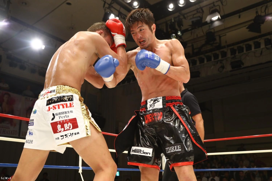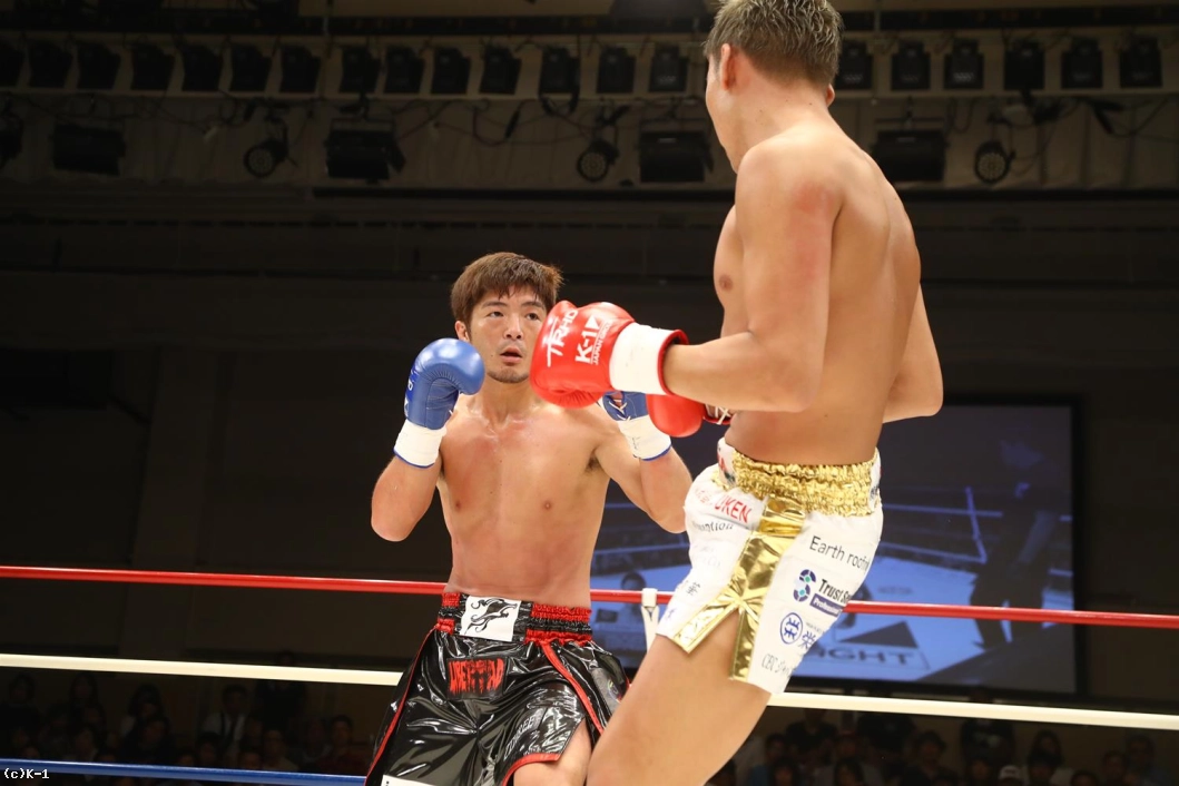 延長R、左ミドルを蹴っていかんとする鈴木だが、左右田は逆にそれをさせじと距離を詰め、接近戦で右クロス・左フック・右アッパーと放っていく。鈴木は近い距離ではヒザ蹴り。レフェリーがブレークして両者を分けると、左右田はすぐに間合いを詰めてやはりショートのパンチを狙っていく。鈴木はプッシングしての左ミドル、あるいは近い距離からヒザを放つが、左右田もヒザを返し、ボディから顔にフックを走らせる。鈴木はヒザと左右のパンチで左右田を押していく。左右田も残り時間が少ない中、ボディアッパーからフックとパンチの回転を止めずに試合を終える。判定は10-9、10-9、10-9の3-0で鈴木。苦しみながらも初防衛を成し遂げた。