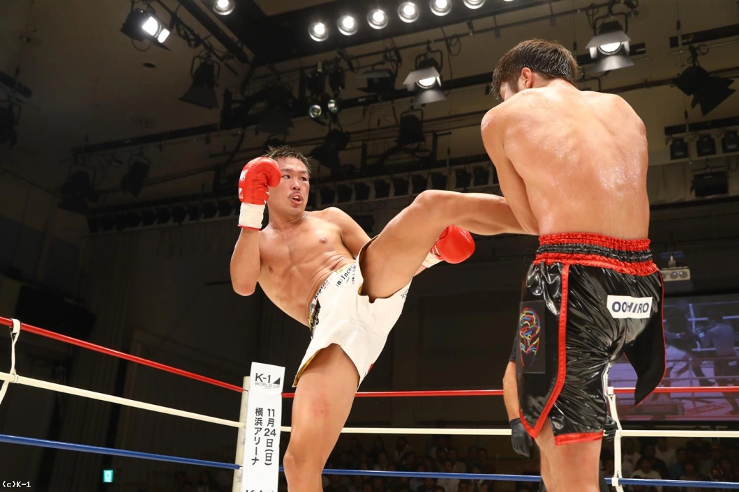 「(試合を振り返って?)強かったです。あと、顔が痛いです。(接戦になると思ってた?)全部予定どおりの展開でした。あの展開になれば負けないと思ってたので。最後は気持ちの戦いだと思ってました。いつもなら1R取って押し切れると思ったんですけど、左右田さんに巻き返されて。強かったですね。(左右田が「これで終わり」と発言していたが?)左右田さんの気持ちをついで、K-1のベルトを絶対に取ります。ここをしっかりと勝ったことで、ファイターですって胸張って言えると思うので、大きい自信になりました。(戦いたい相手は?)誰でもいいです。用意された相手に挑戦して、一個一個クリアしたいですね。(もともと左右田とは知り合いだった?)そうなんですよ、共通の知り合いもいて。二年前から左右田さんと交流があって。左右田さんはすごくいい方で、本当に尊敬してました。でも、勝負事は自分が蹴落としていかなければいけないので。左右田さんの意思をついで上に上がります。KRUSHの絶対王者になって、なおかつK-1のベルトを取りにいきたいと思います。これからも応援よろしくお願いします」