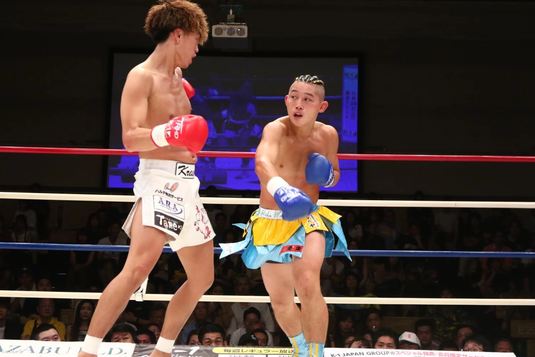 2R、両者ミドルとローで蹴り合いを展開。こののラウンドも圧力を発してくる佐野を森坂はミドルの連打でストップせんとするが、佐野はジャブとミドルで森坂をロープ際に誘導する。そしてパンチに切り替え、ジャブ・右ストレートで森坂を襲う。ガードを固くして前に出ていく森坂は右ローを連打してバックブロー。だが佐野もはガードが的確でクリーンヒットさせない。森坂に右ストレートを決めて横向きにした佐野は、2R最後も右ハイキックで森坂を脅かす。