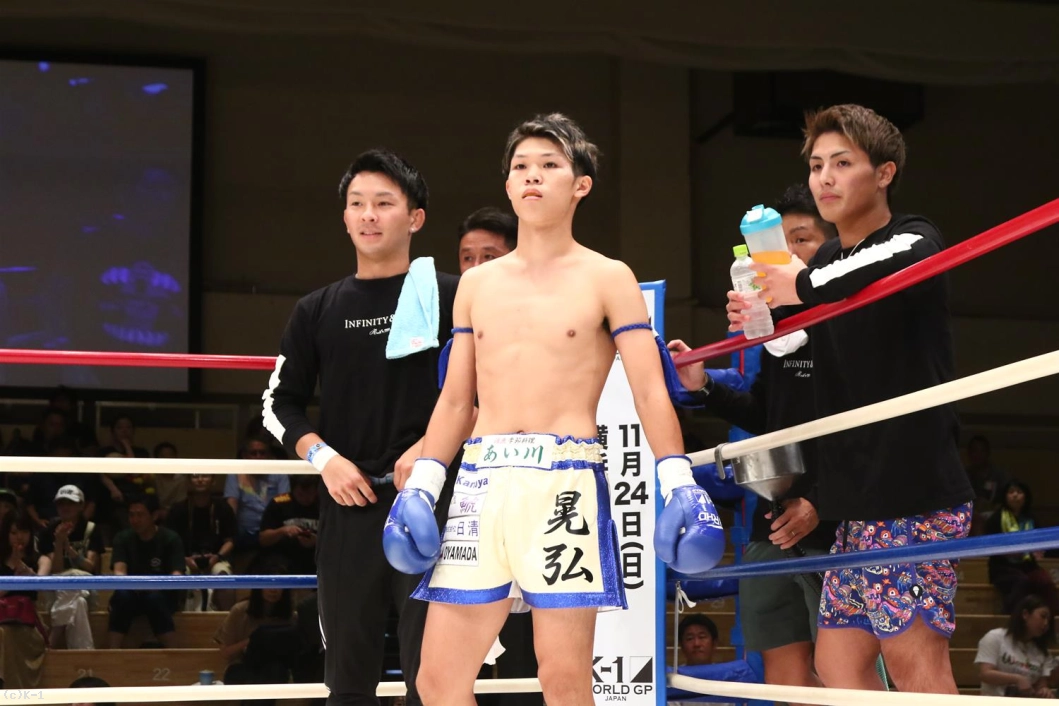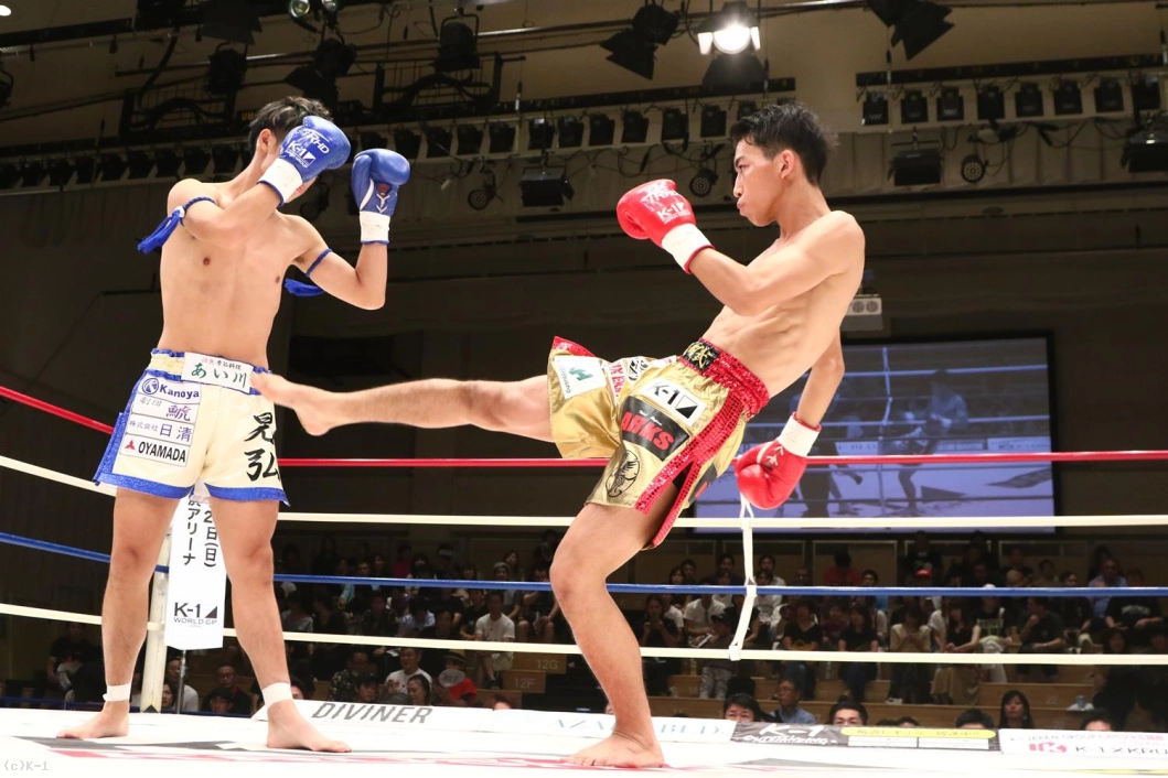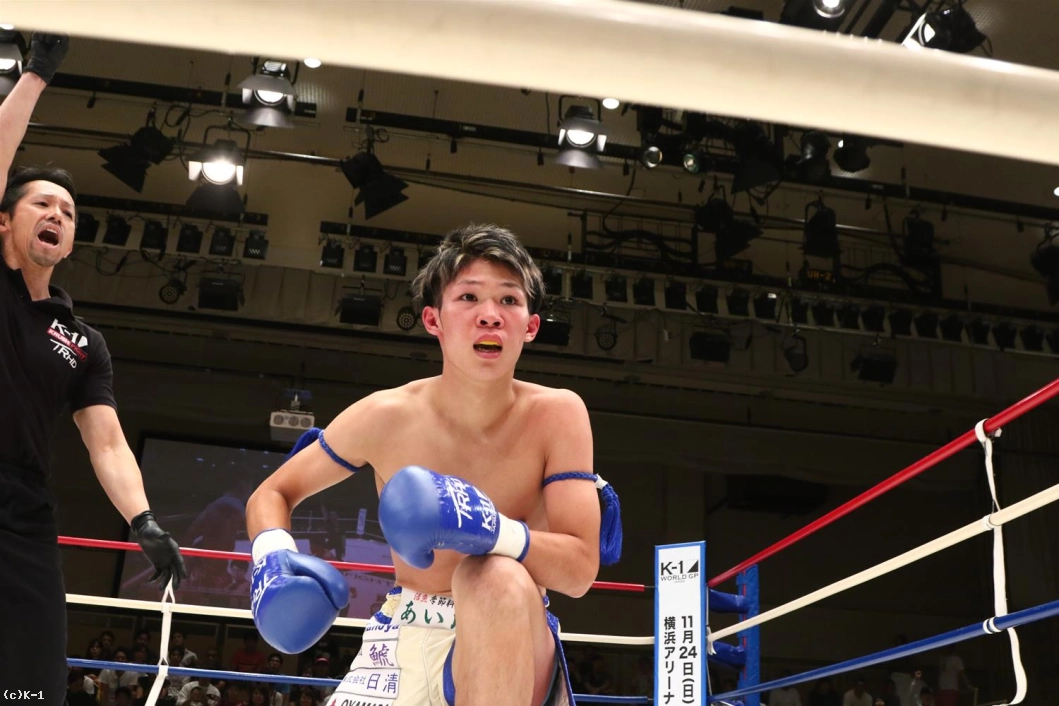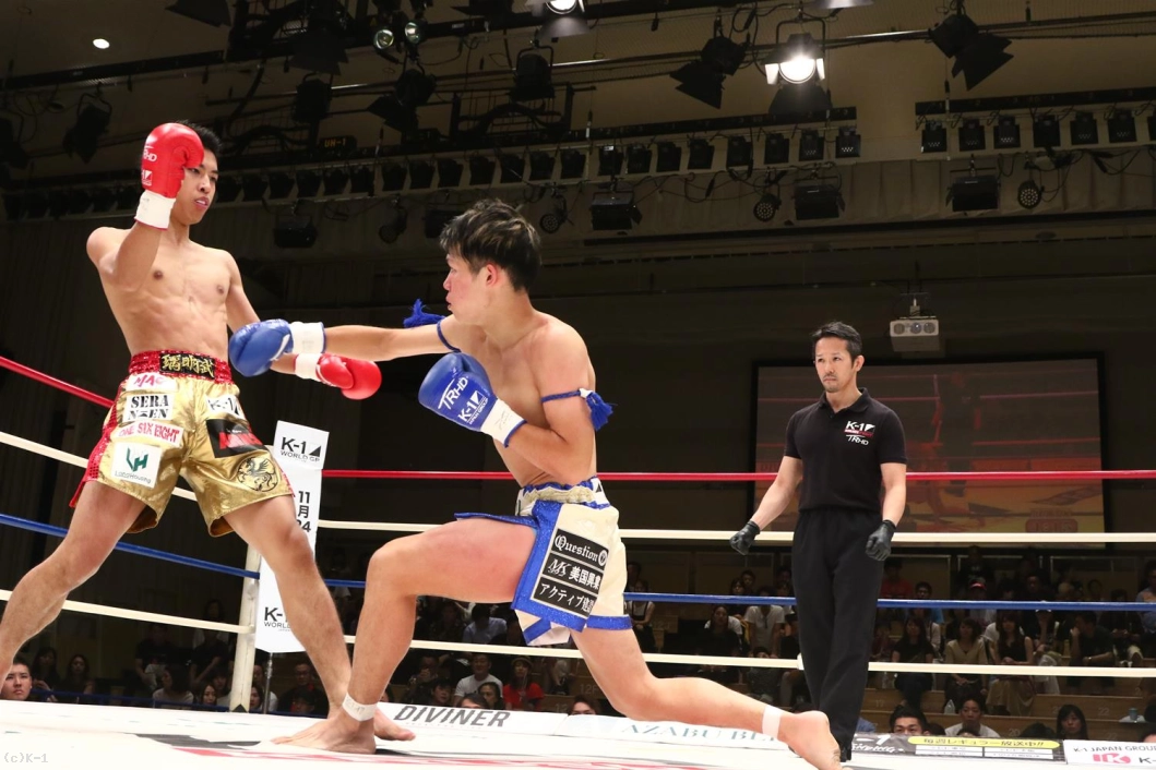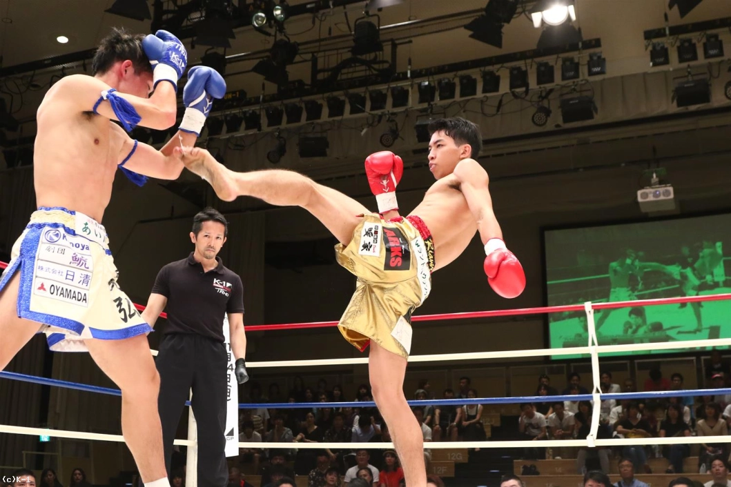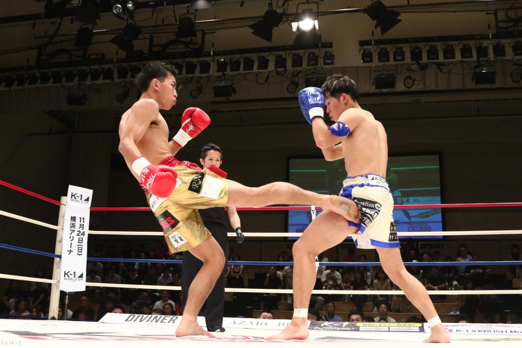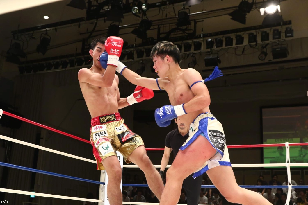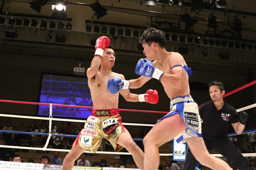 3R、ガードをやはり高くしている璃明武はジャブを突き、ボディと顔へヒザを突き上げる。だが晃弘はひるむことなく左右のパンチを振るっていく。晃弘の左フック・右ストレートに対し、璃明武はガードでクリーンヒットを与えず、ヒザをボディに突き刺していく。晃弘はこれを受けても下がらず、逆転を狙いパンチを振るう。だが璃明武をとらえられない。判定は30-27、30-28、29-28の3-0で璃明武 。無敗対決を制した。