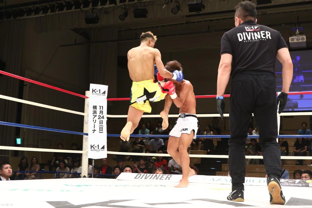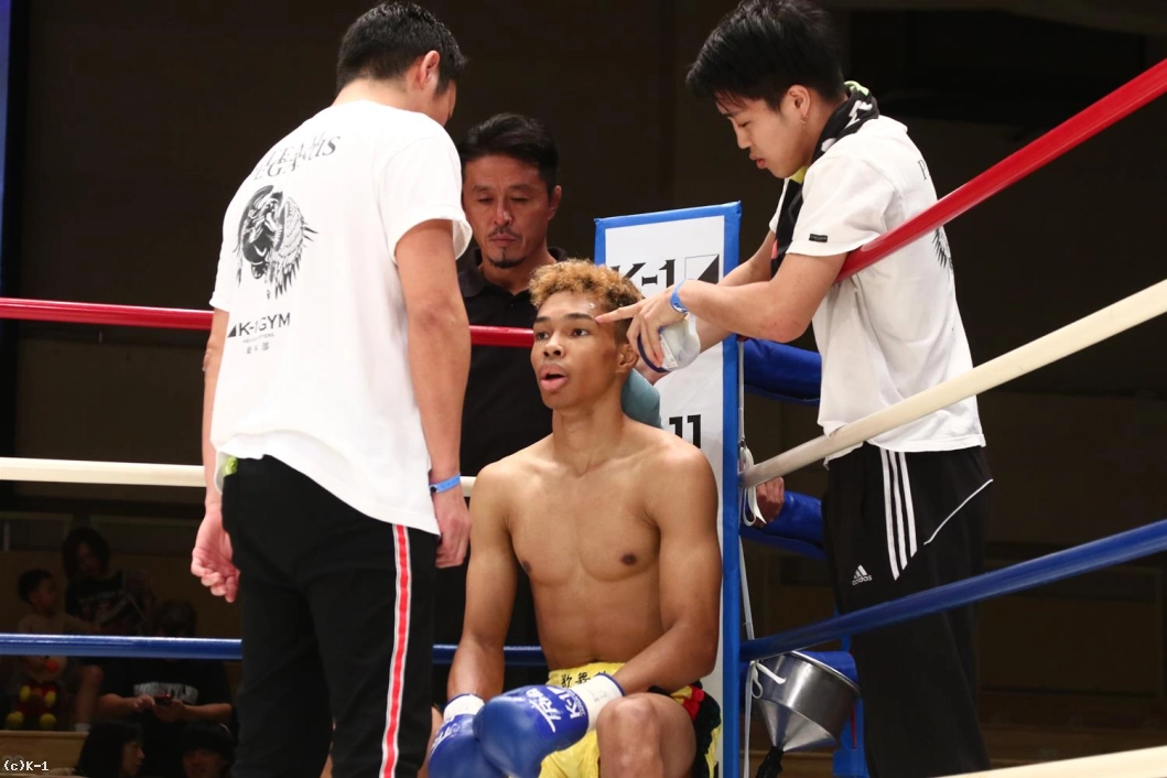 3R、間合いを詰めていく清水だが、アリはこれをヒザ蹴りで迎え撃つ。そして距離が開くと清水に右ハイを連打。そして顔への跳びヒザ、右アッパーの連打でスタンディングダウンを奪う。ファイティングポーズを取る清水だが、左目周辺から出血が見られドクターチェック。そのままストップとなり、アリがデビュー戦をTKO勝利で飾った。