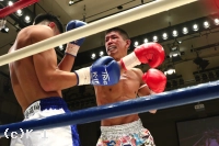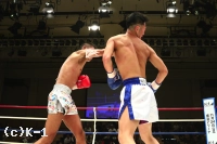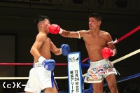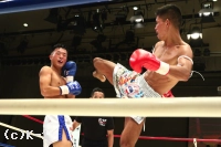 2R、水津は左ミドルを放ち、左ストレート、ボディフックをヒット。八木が打ち返してくると水津は距離を取って当てさせず、左ボディアッパーを八木に効かせる。水津はボディのダメージを見逃さず、ヒザ蹴りも八木のボディへ。ここで八木に右目じりからの出血が見られドクターチェックが行われる。再開すると前に出ていくのは水津。ストレートが八木をとらえる。右目付近からの出血が目立ってくる八木。しかし水津が間合いを詰めてくると連打を返す。