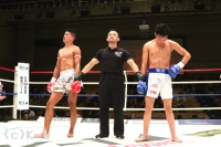 3R、八木は前蹴りをボディと顔面に送り、そこから左右ストレートを水津にヒット。さらにミドルキックも水津のボディをとらえる。被弾とスタミナ切れで動きが落ちた水津は八木に右ストレート、左フックで攻められる。だが水津も左ストレート、右フックで反撃。両者一進一退、互いにストレートとフックで打ち合って試合を終える。判定は29-28、29-29、29-29で水津に1票入るもドロー、引き分けとなった。