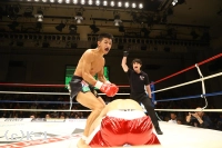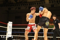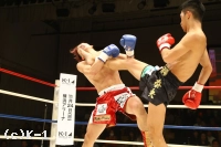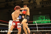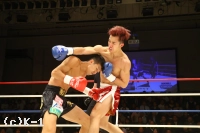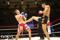 (近年稀に見るくらい、いい動きに見えたが?)そうですね(苦笑)。母さんの作った料理のおかげかな、と(笑)。本当のことをいうと、会場に来られてないかたの応援だったり、いままで戦った戦友の『がんばってくれ』という応援があって、それが励みになりました。(顔面は狙ってた?)そうですね。男前だったんで蹴るのをためらったんですけど(苦笑)。狙ったというか、自然に出たという感じで。全部同じような蹴りに見えて、タイミングを変えたりしたので。相手には周りから見ているのとは違う印象の蹴りだったと思います。