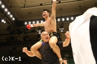 「来月タイトルマッチ(レオナ・ペタスvs山本直樹)があると思うんですけど、次の挑戦者は俺しかいないでしょ。いまK-1以外も盛り上がっていますが、俺が最強を証明します。この後メインでもっと熱い試合をしてくれると思うので楽しんで帰ってください」