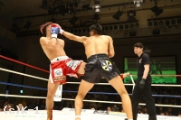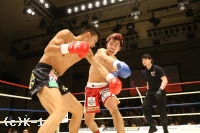 1R、朝久はミドル、ローと蹴りで先制。西元が踏み込みからの左右フックを振るうが、朝久は下がらない。朝久がジャブからの右クロスをヒット。西元が右フックを振るっても朝久はヘッドスリップして当てさせず、逆にそこへフックをカウンターで狙っていく。打ち合いの中でフックを当てた西元は軽くガッツポーズ。しかし朝久は顔面ヒザ、ハイキックと西元を攻める。