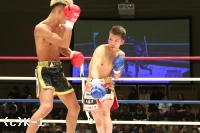 2R、やはり前に出ようとする倉田だが、高橋はそこをミドル、ローと放って止める。倉田もこれにワンツー、左フックといったパンチを主体に攻め状況を打開せんとする。高橋が右ローを入れれば倉田がパンチを返し、ここも両者一進一退の攻防となる。
