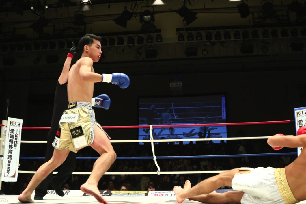 「こんばんは。どうでしたか、俺の試合。あれは狙っていたので作戦通りっていう感じなんですけど、来年Krushのスーパー・バンタム級のベルトを狙っていくので自分のことを注目しておいてください。この後、うちのジムの瓦田さんとSATORU成合さん、2人の応援もよろしくお願いします。今日はありがとうございました」