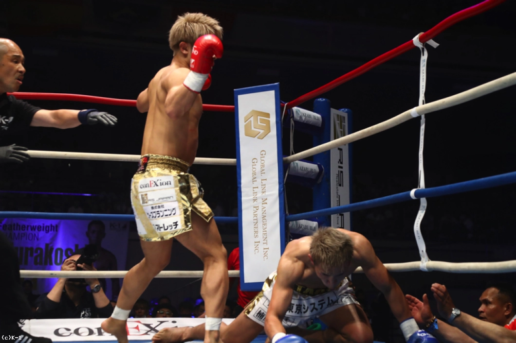「もう何も言えないというぐらい、何もできなかったというか、やれなかったです。相手はサウスポーだったんで、右のミドルからつなげていこうかなと考えていたんですが、小澤選手と会場全部に飲まれちゃって、今はもう頭が真っ白です。(今後の目標は?)自分はまだK-1に出れるレベルの選手じゃなかったということなんで、また下から、ゼロから、マイナスから這い上がりたいと思います」
