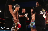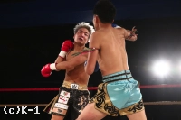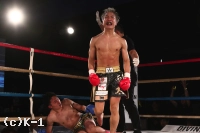 3R、ダメージを隠そうとする向井だが、鈴輝は右ローを決め、これで意識を下に落として右ストレート・左フックを当てる。両者組みつきが多くレフェリーから注意が与えられる。鈴輝はこれを機に前へ出て左ボディフックをクリーンヒット。劣勢の向井は前に出ようとするも組みつきが増えてしまい、イエローカードを提示され減点1となる。再開すると鈴輝は右ローで向井を崩してダウンを奪取。なんとか立ち上がる向井だったが、鈴輝が右ローで2度目のダウンを奪って、試合終了直前でのKOを決めた。