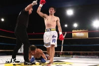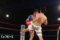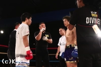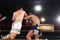 2R、ワンツーあるいはプッシングからヒザ・ローを繋げる鈴木。この鈴木の圧力に下がらされる関川だが、右ローを効かせ、これで意識を下に落としたところで右ストレート。この後でさらに右フックを側頭部に打ち込み鈴木をダウンさせる。立ち上がった鈴木はガードを固めながら前に出るが、関川はパンチをまとめレフェリーに試合をストップさせた。