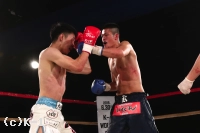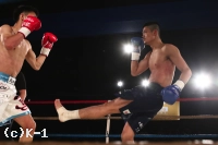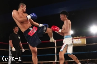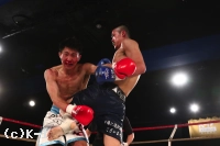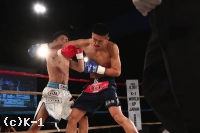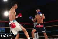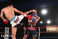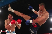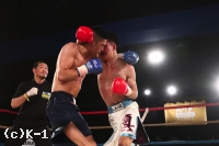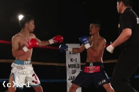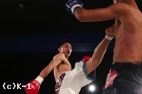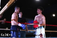 2R、山本はこのラウンドも右ミドルで山下のわき腹をとらえる。そして山下のガードが下がっているのを見て取ったか、右ストレートを当てて攻める。しかし山下もサウスポーからの左フック、左ストレートを当て返す。山本が右ヒザをボディに効かせば、山下は左ストレート、右フックとパンチが当たり始める。山本もこれに呼応して打ち合いを展開。山下が左ストレート・右フックを当てて、打ち合いを制して終える。