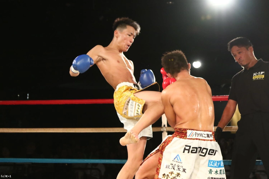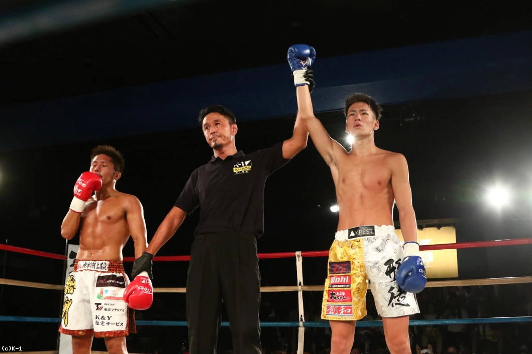 3R、秀樹は構えをサウスポーに構えて向かう。岡嶋は右ミドル、前蹴りを飛ばして秀樹を懐に入れさせない。左ボディストレート、左ローと入れる秀樹だが、岡嶋はそこを右ストレートを伸ばしてとらえる。ラウンド終盤、岡嶋は跳びヒザで入り、そこから右ストレートを繋ぐとこれでダウンを奪取。秀樹は立ち上がるも終了のゴングが打ち鳴らされる。判定は30-27、30-27、30-27の3-0で岡嶋。デビュー戦を勝利で飾った。