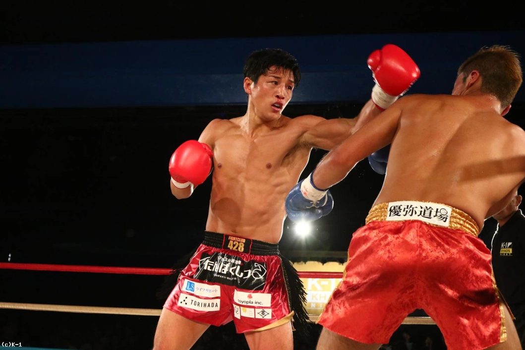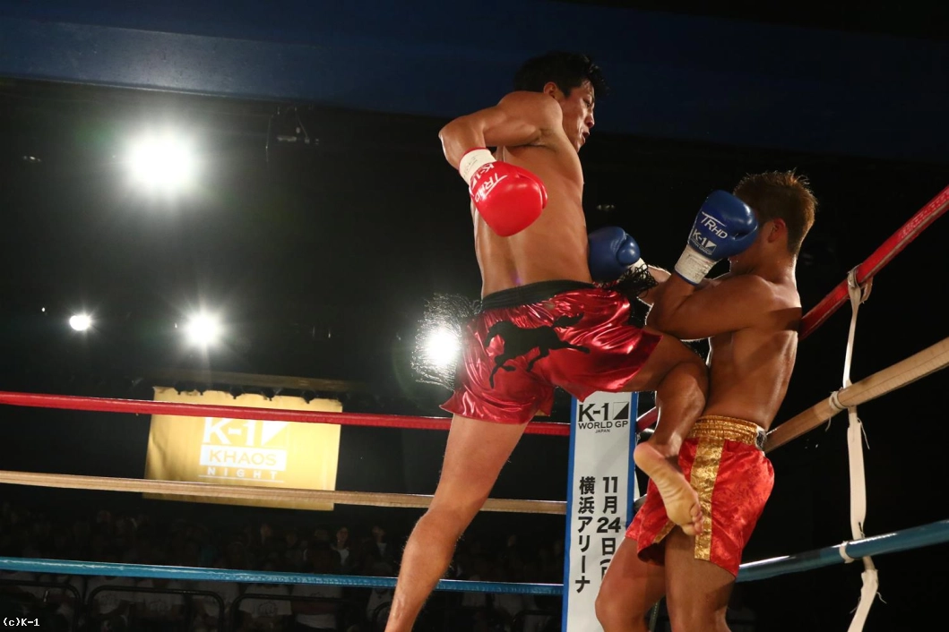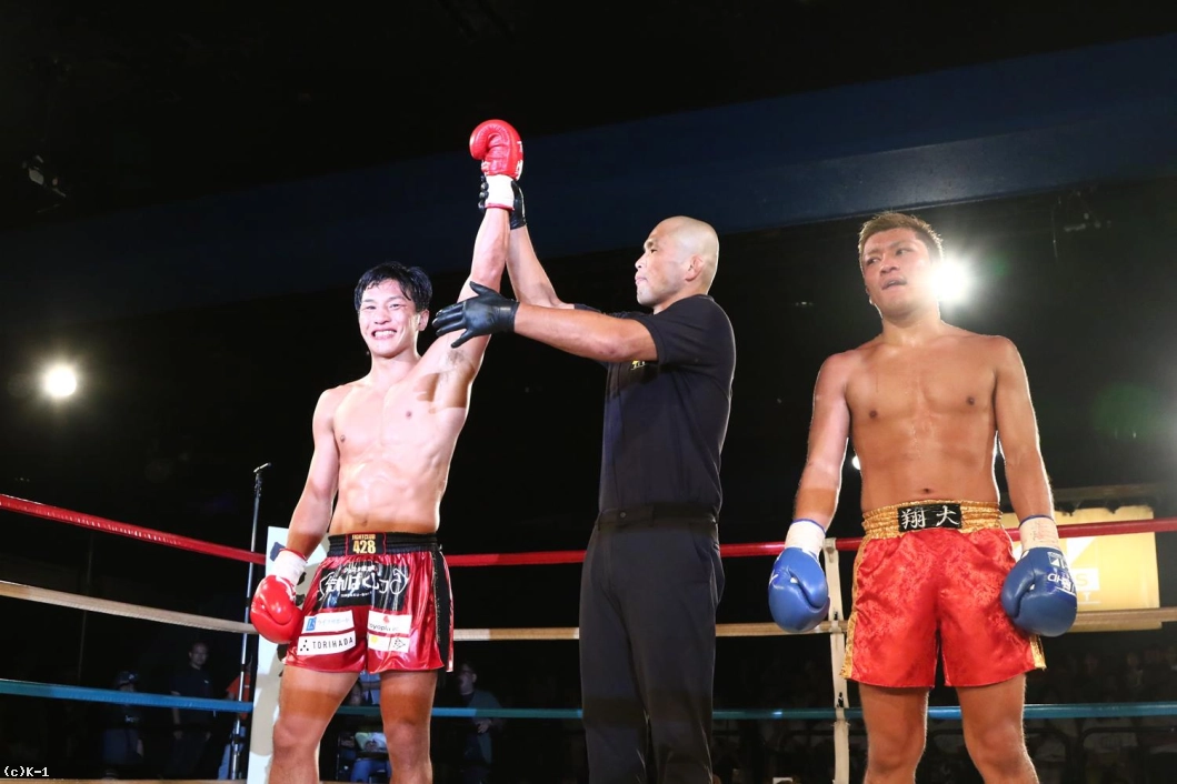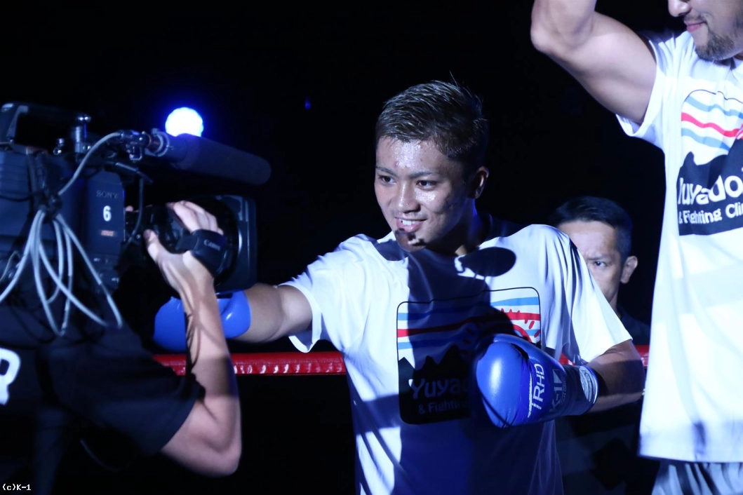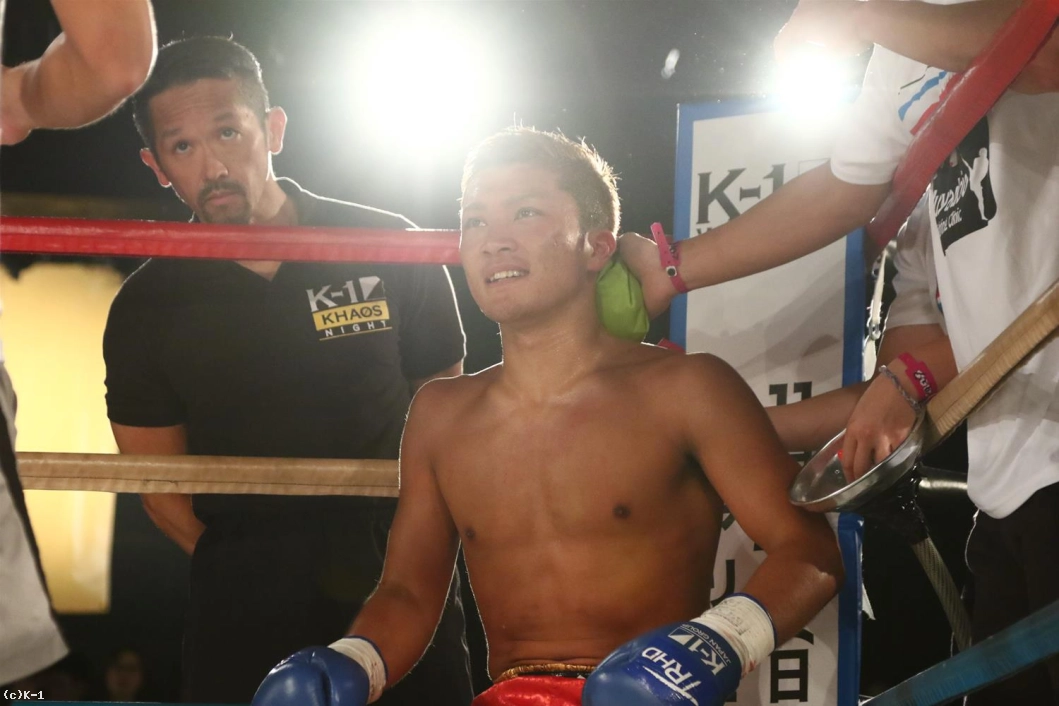 「(試合を振り返って?)この試合に向けて、凄くたくさんの時間を使って準備してたんですけど、1R目から練習していたことが、相手選手に技術があって、思うように出せなかったんですけど、最終的には気持ちの勝負で勝利をもぎ取れたと思います。(対戦相手の印象は?)技術も気持ちの強さもどっちも兼ね揃えていて。今回がプロデビューの選手でしたけど、そう思えないくらいの実力を持っていて。これから恐ろしい選手だなと思いました。(今後の目標)K-1 JAPAN GROUPの試合に出させていただいてるからには、K-1のリングが一番の目標なので、K-1のリングで勝ちたいというのが絶対にあります」